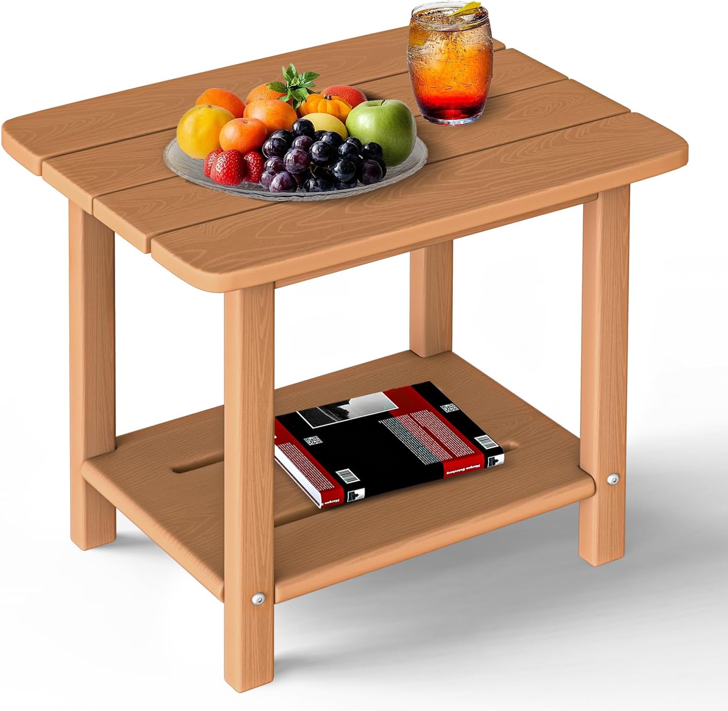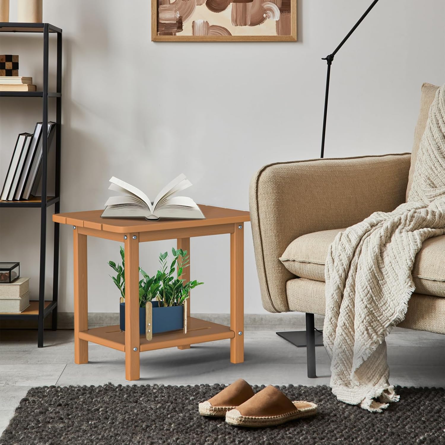 Adirondack Square Side Table - 18.4" Large Panel HDPE Outdoor End Table - Weatherproof, Rustproof & Low Maintenance for Patio, Lawn, Pool, Indoor Use (Teak)