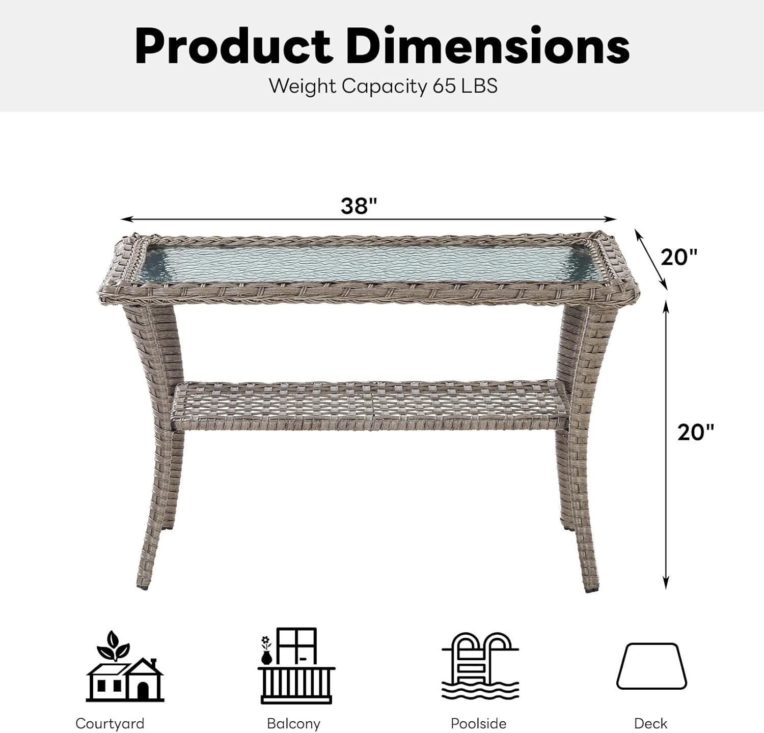 - 2-Tier Storage Solution: This wicker coffee table features a spacious 2-tier design, providing both a tempered glass top and a lower shelf for practical storage. Keep drinks, snacks, books, or decorative items organized and easily accessible, adding functionality to your outdoor relaxation area.