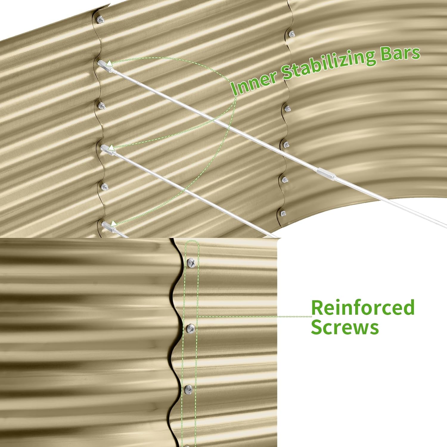 Land Guard 8x4x3ft Oval Galvanized Raised Garden Beds, Large-Capacity Metal Planter Box Outdoor, Durable Deep Raised Garden Bed 3ft Tall, Raised Beds for Gardening Vegetables, Cream Yellow