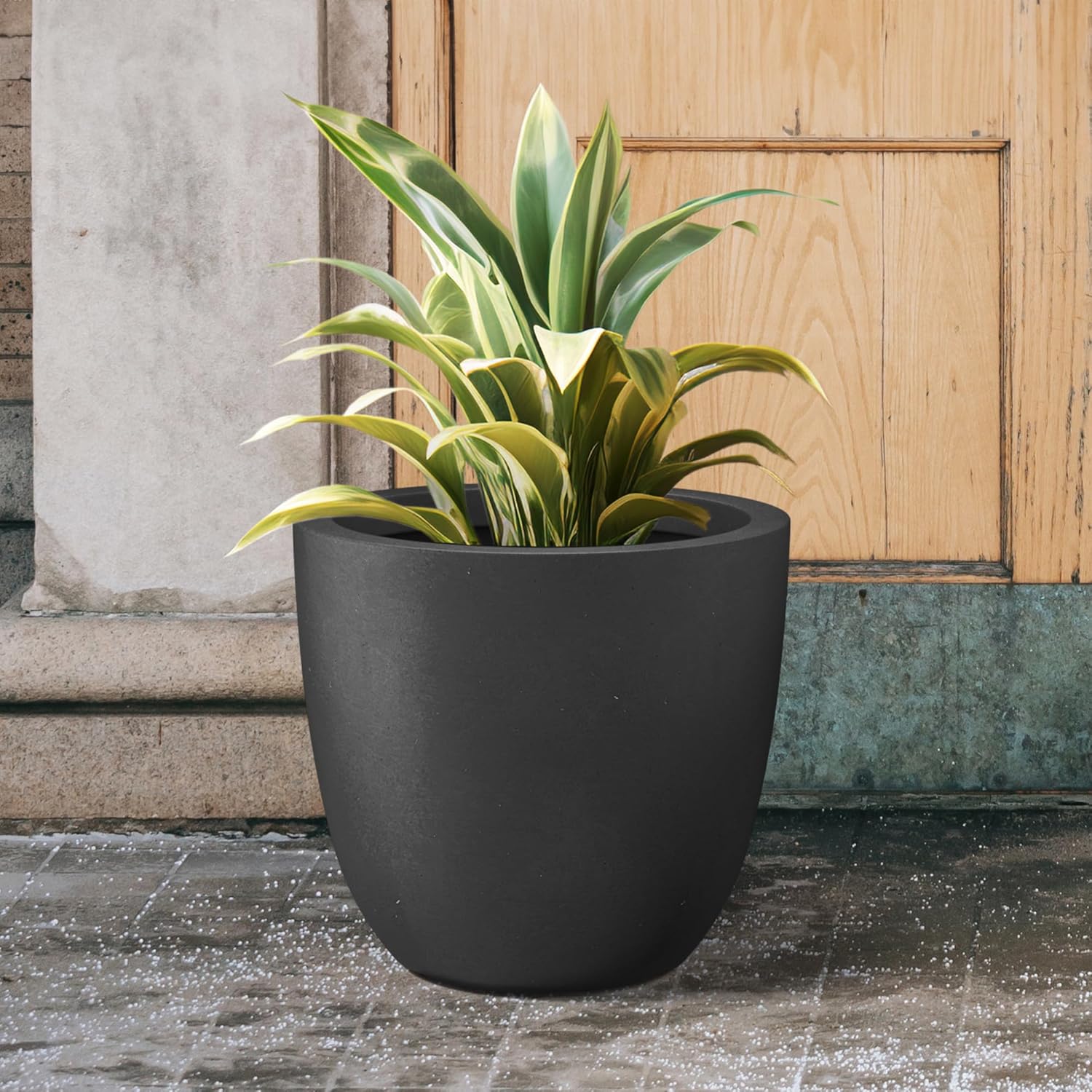 Kante 18 Inch Dia Round Concrete Planter, Indoor Outdoor Large Plant Pot with Drainage Hole and Rubber Plug for Home Patio Garden, Black