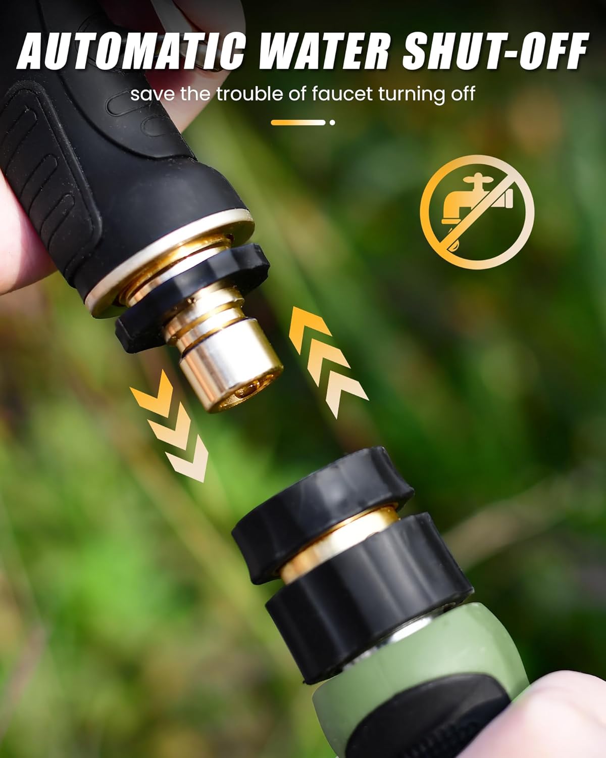 - FLOW-STOP-CONNECTOR: The garden hose sprayer comes with a flow-stop-connector to save the trouble of walking around to turn off the faucet, protect you from being sprayed when disconnecting the hose nozzle.
