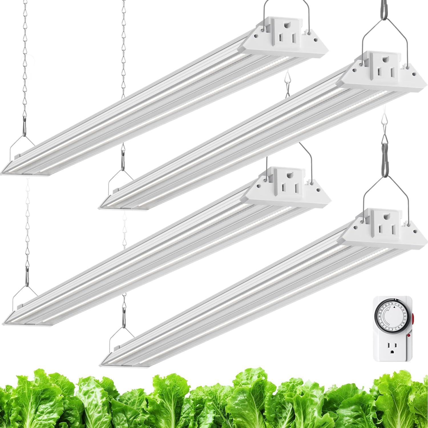 Barrina TX72 4FT Grow Lights for Seed Starting, 288W (4 x 72W, 2000W Equivalent), High PPFD, 5000K Daylight Full Spectrum, Mechanical Timer, Hanging Grow Lights with On/Off Switch Linkable, 4 Packs