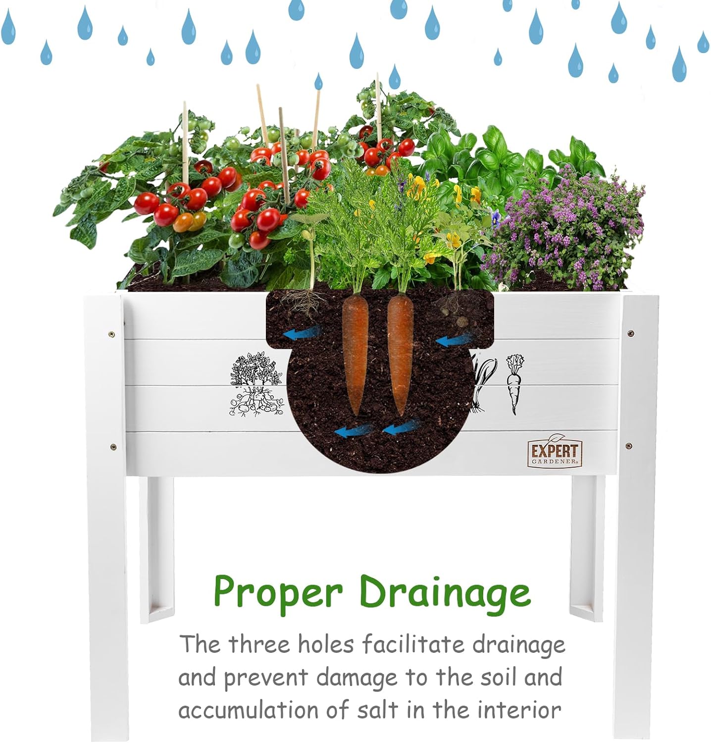 WONDER GARDEN Raised Garden Bed-Planters for Outdoor Plants - Wood Planter Boxes Outdoor for Kids with Legs and DIY Chalkboard for Vegetables Flower Herb(White)
