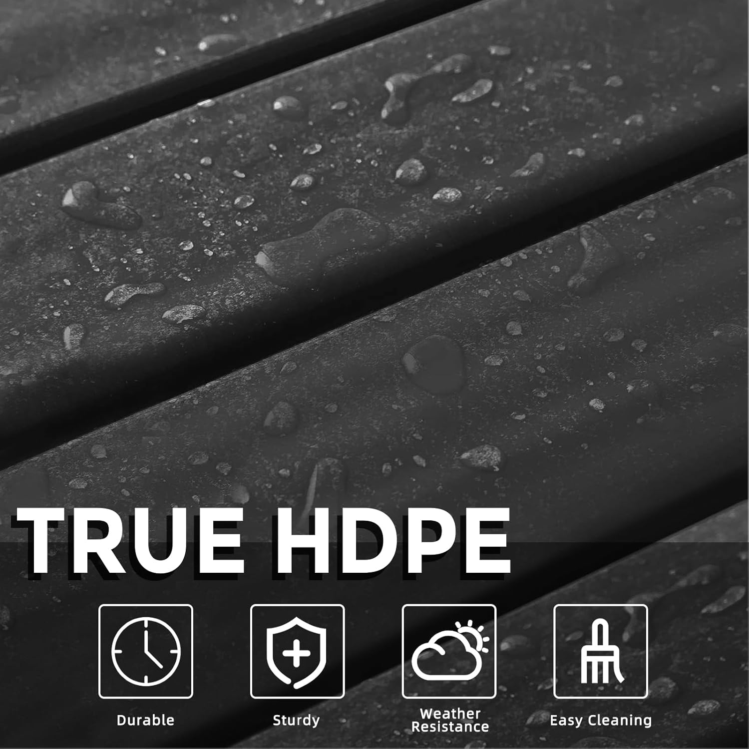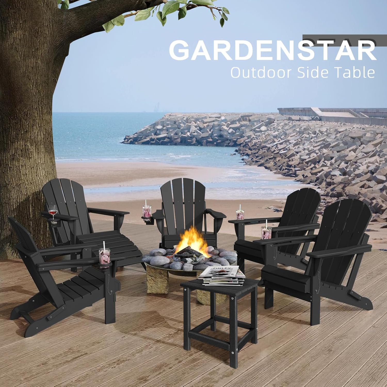 - ăDurable and WaterproofăOur small outdoor side table is made of recycled plastic HDPE. This material prevents warping, dents, rot and fading, perfectly improving the shortcomings of solid wood that is prone to rot, mold, chipping, peeling and cracking. The slat of outdoor end tables design allows for effective drainage, keeping it dry even in wet conditions. The adirondack side table outdoor is rust-proof, durable and has a long service life.