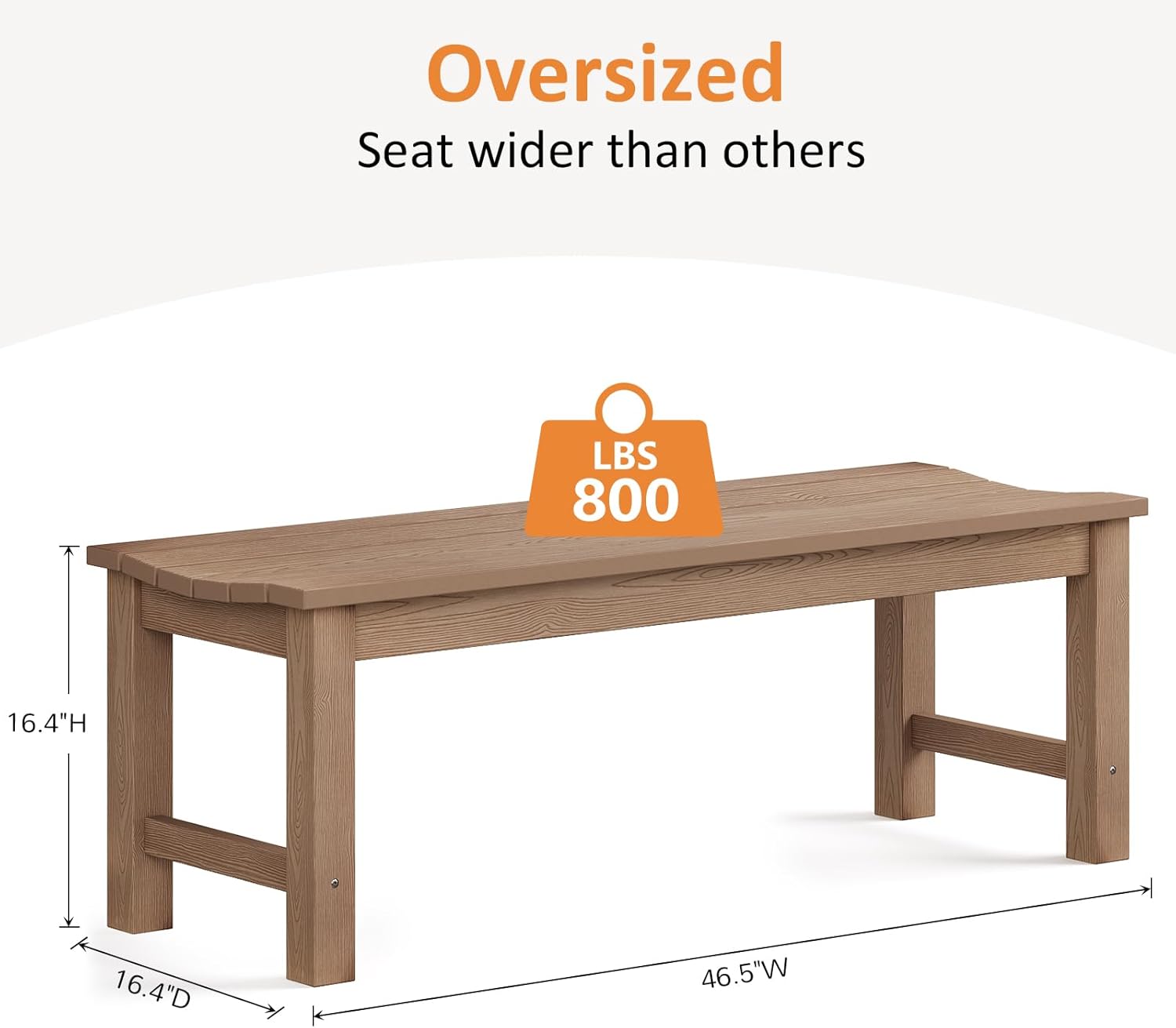 - ăWeatherproof Materialsă The outdoor bench is made of HIPS (poly lumber), with 304 stainless screws. It's for all weather & season, never rusts and moldy. No fading, no paint.