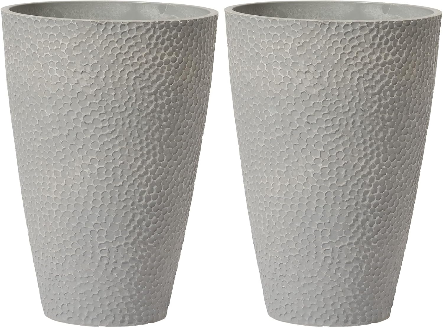 LA JOLIE MUSE 20 inch Tall Planters Set of 2, Tall Round Planters for Outdoor Plants, Grey Flower Pots for Front Door,Patio and Deck,Honeycomb.