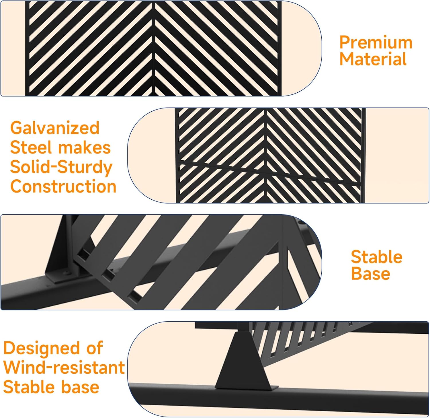 - Durable Construction: Built with thickened steel and a powder-coated finish, our metal privacy screen is designed to resist sun damage and water, ensuring longevity and durability. Ideal for withstanding varied weather conditions, from intense sun to heavy rain, without rusting or fading.
