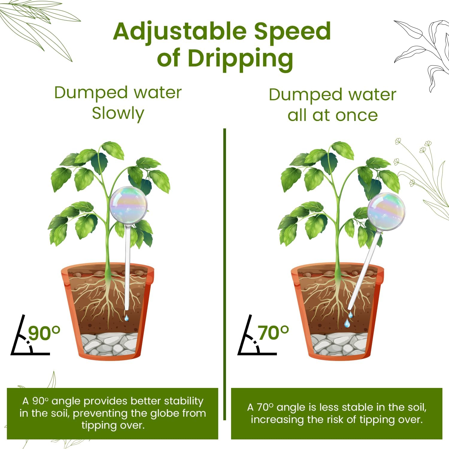- Vacation-Proof Hydration: Ensure your plants stay lush and vibrant even when you're away with our Glass Globe Watering System, designed for effortless watering during vacations.