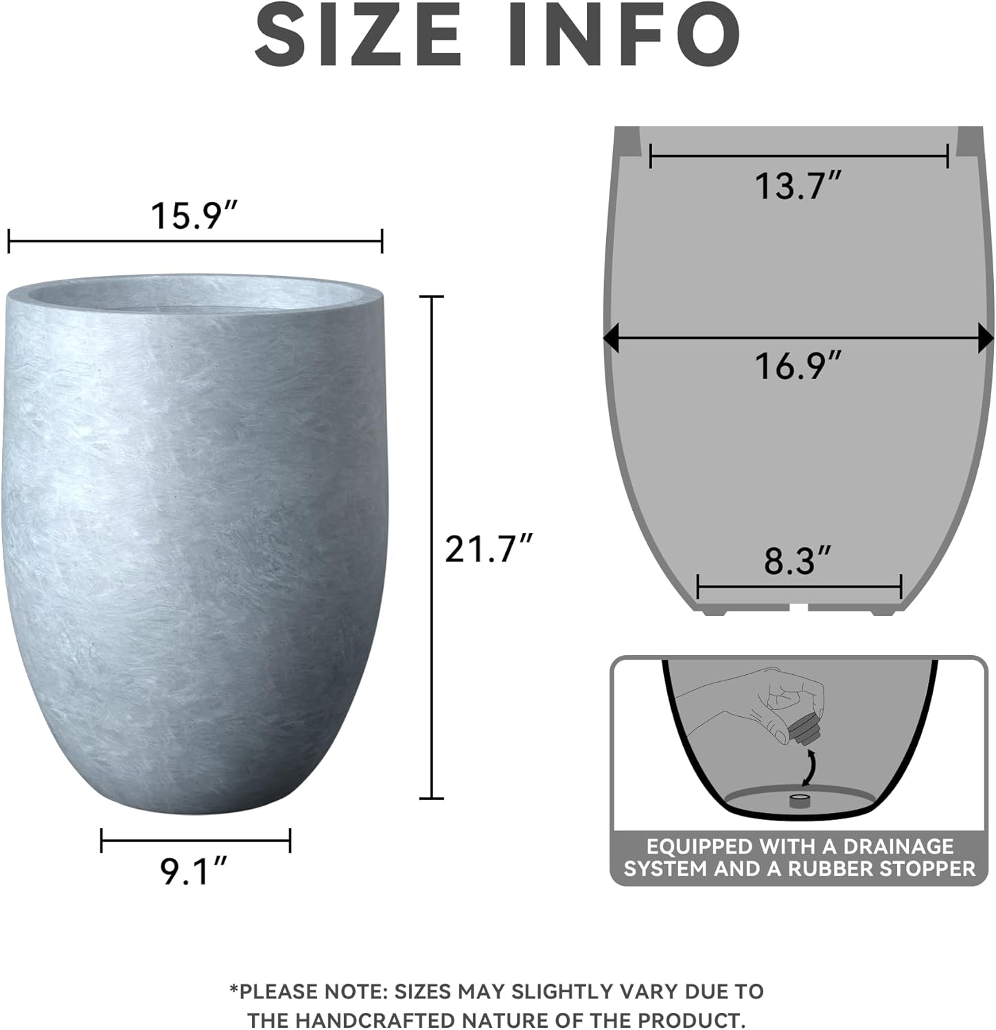 Kante Tall Concrete Planter, 21.7-Inch Height Blue-Gray Large Indoor Outdoor Plant Pot with Drainage Hole for Patio Garden Home, Modern Decor for Flowers and Tree