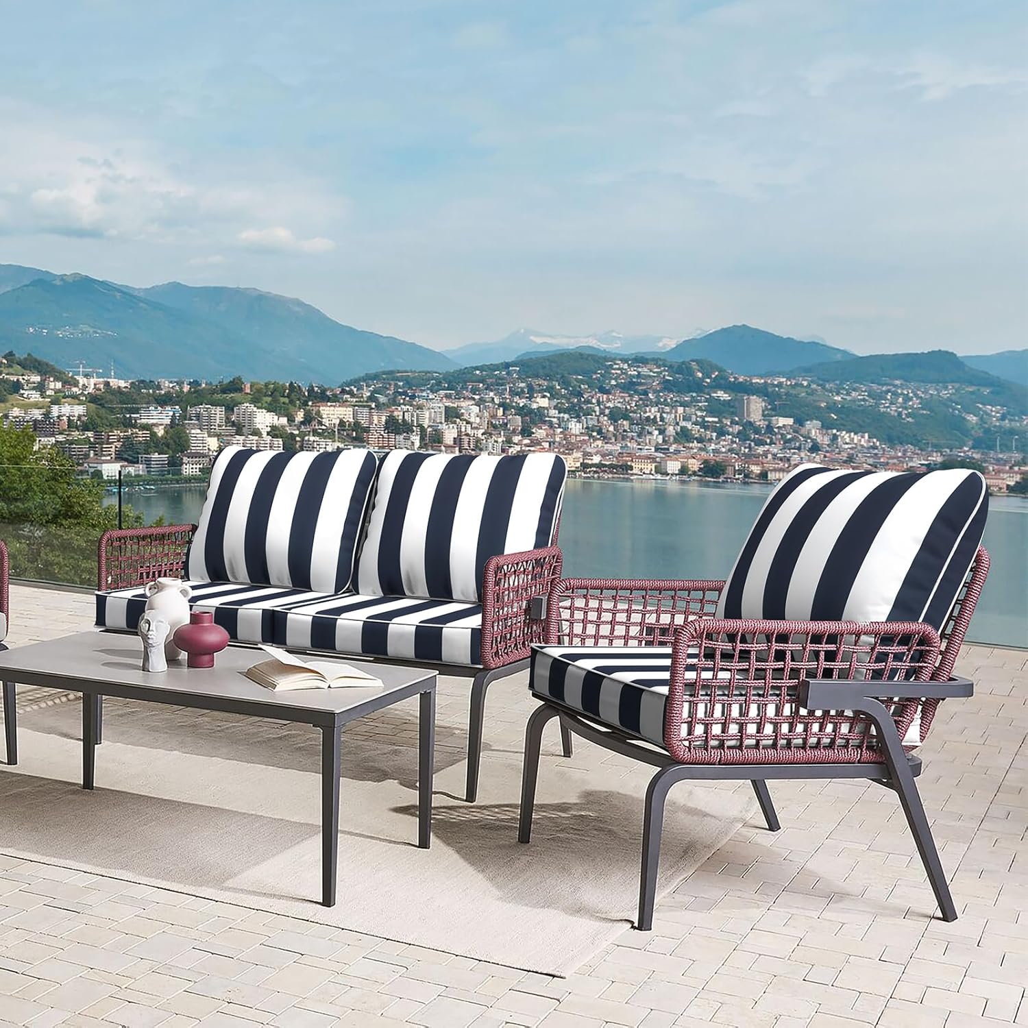 - ⭐Material: Made of 100% durable polyester fabric and soft filling material. It’s water repellent and fade-resistant. Won’t fading under the direct sunlight over 500 hours. Cushions are filled with 28D high resilient foama, overstuffed construction for enhanced comfort and longevity.