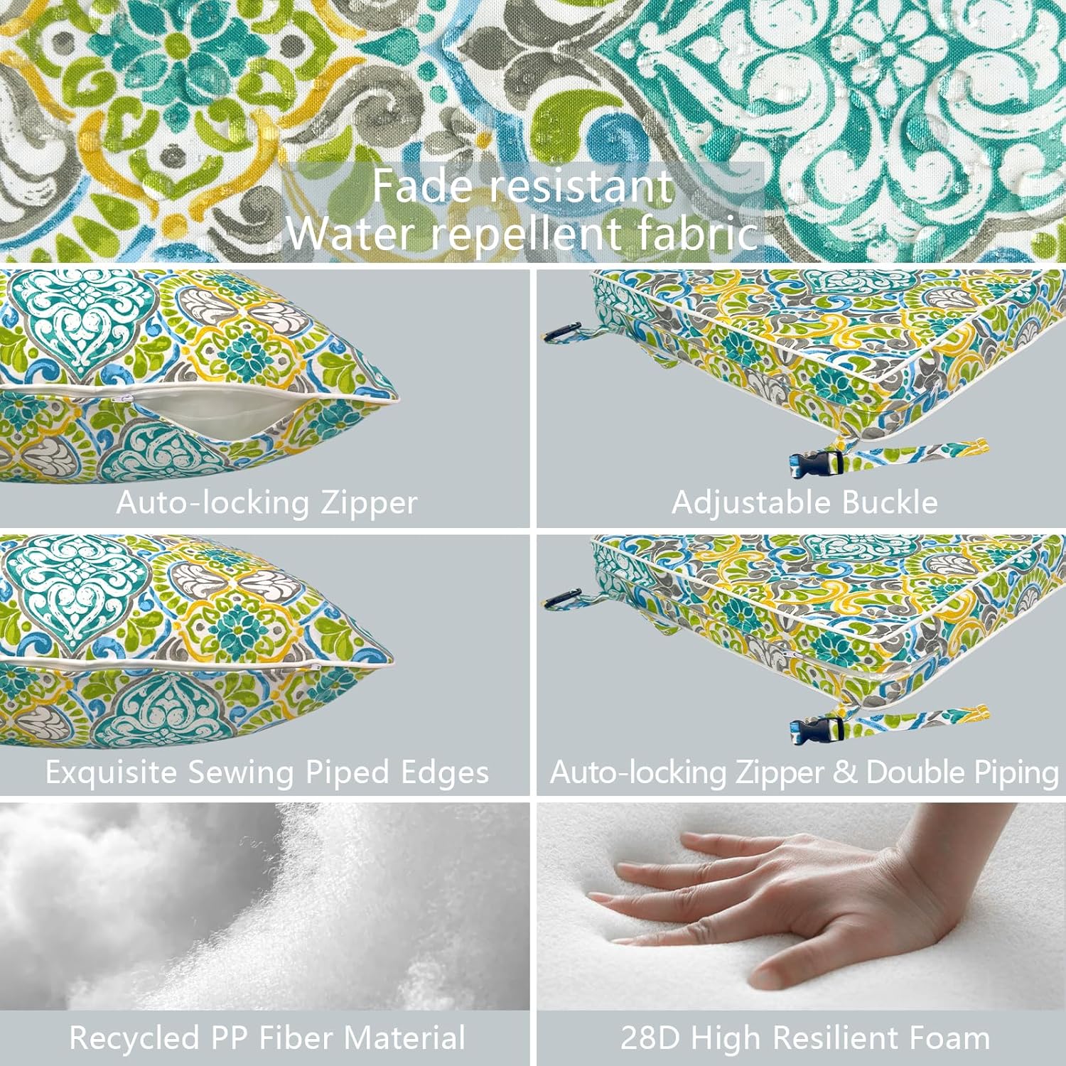 - 🌈Buckle Ties and Patterns: 2 adjustable buckle ties keep your cushions securely fastened to the furniture, brings you great comforts. Multiple modern patterns bring you more decorative choices. Picking the right color to match your furniture will bring you a different feeling.