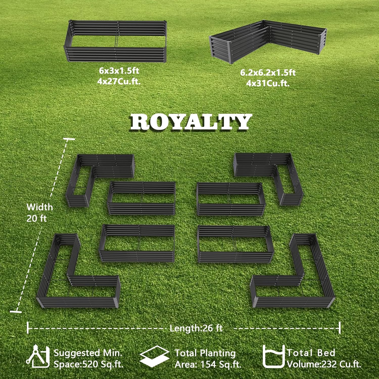 A ANLEOLIFE 8-Pack 6X3X1.5ft & 74x74x18 in Deep Root Galvanized Raised Garden Beds Outdoor for Planting Vegetables Flowers Herb, Quartz Grey