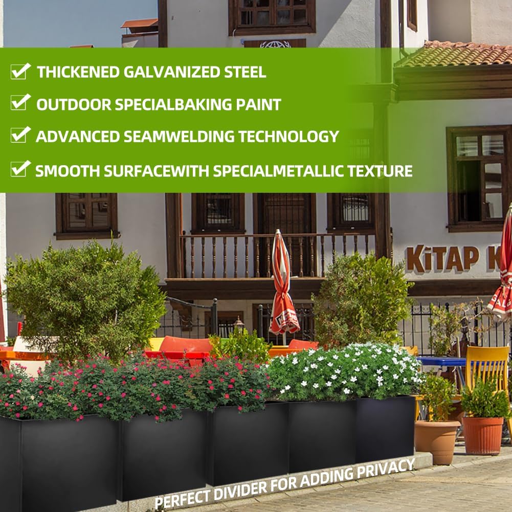 Metal Tall Long Planter Box Large Rectangular Planter Flower Pot with Drainage Holes for Indoor Outdoor Deck Porch Garden Home Patio Front Door (Black, S)