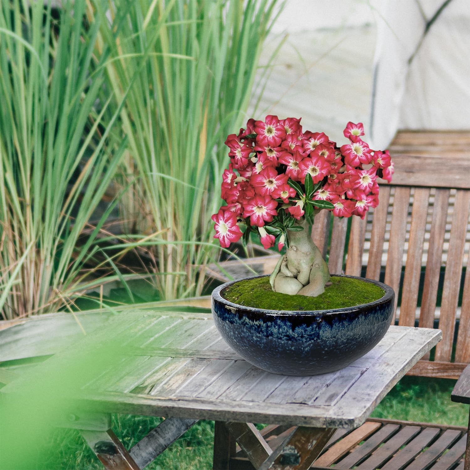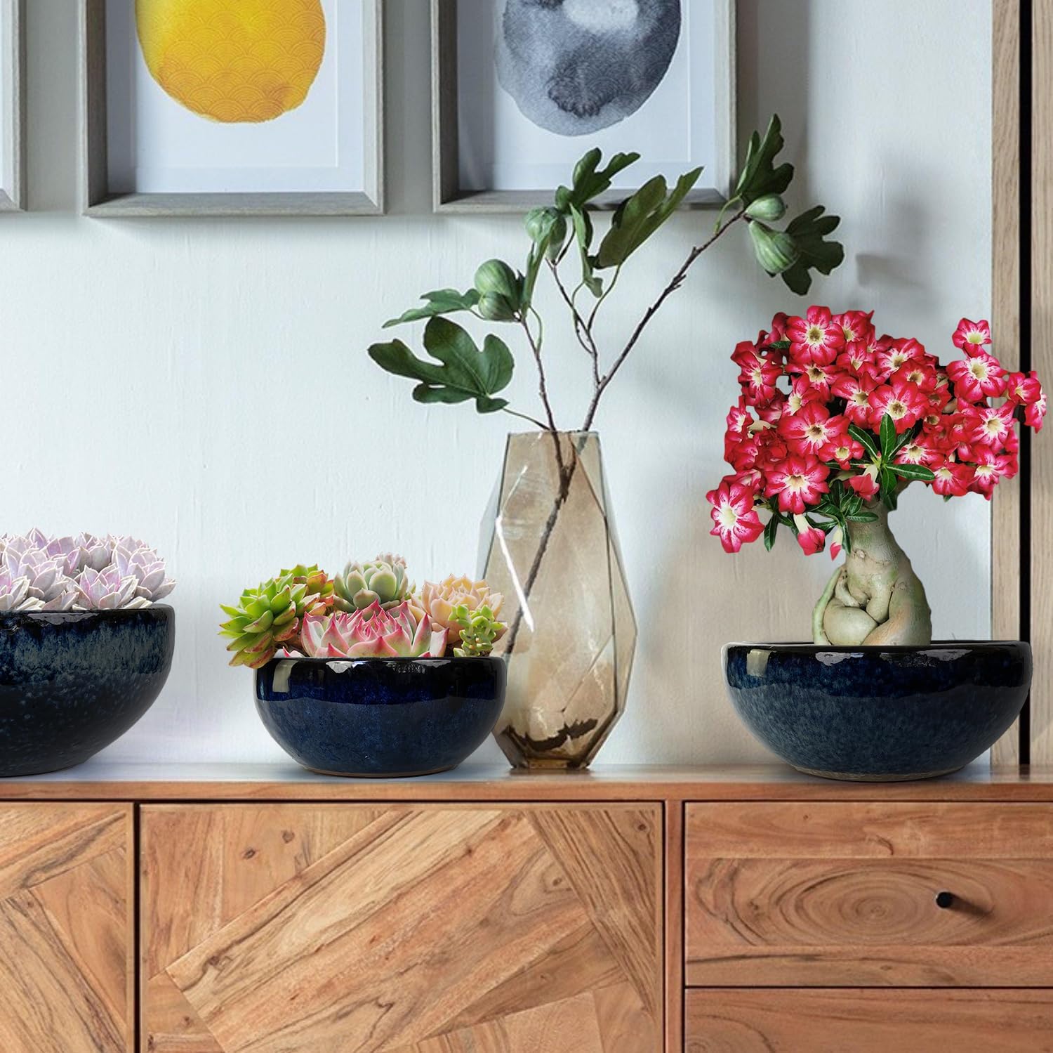 11 9 7 Inch Succulent Pot with Drainage and Mesh Pads Large Round Ceramic Plant Pot for Indoor Outdoor Plants Succulent Planter Cactus Bonsai Pot Container Set of 3 (Blue)