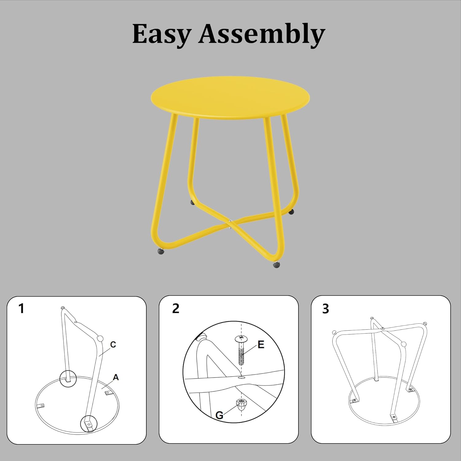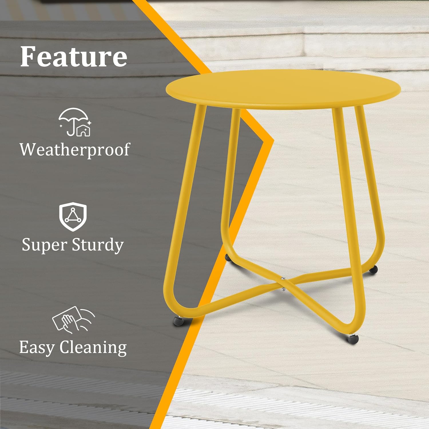 Patio Side Table Waterproof Round Metal Steel Weather Resistant Portable Outdoor and Indoor End Table for Garden Balcony Yard, Lemon Yellow