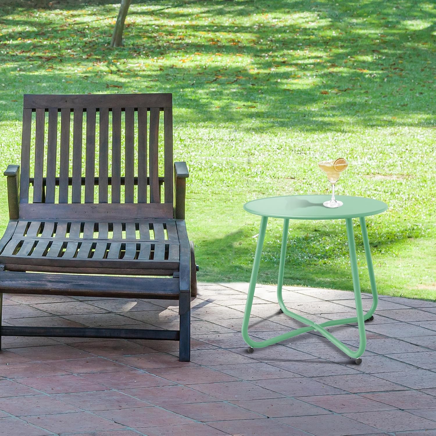 Patio Side Table Waterproof Round Metal Steel Weather Resistant Portable Outdoor and Indoor End Table for Garden Balcony Yard, Bean Green