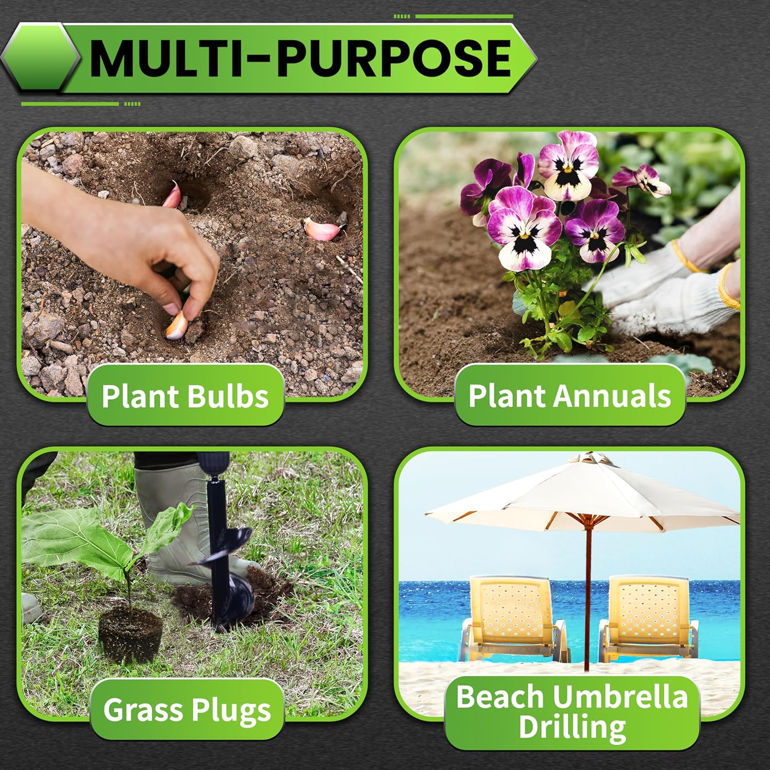 - 【Multi-functional Tool】Our long auger drill bit for planting is designed for a broad range of uses. Perfect for planting shrubs and trees, it’s also excellent for installing larger planters, beach umbrellas, mailboxes, fences, and trellises. This versatile bit simplifies complex gardening and installation tasks, making it a must-have for dedicated gardeners and DIY aficionados.