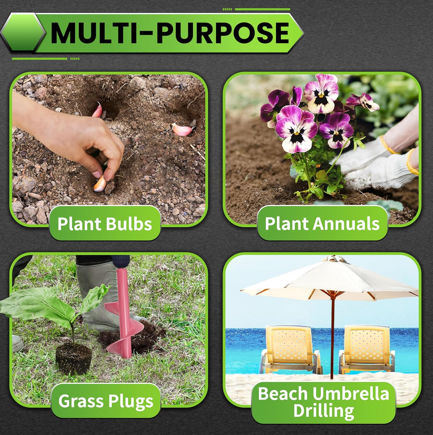 - Use It Anywhere: Although this auger spiral drill bit is perfect for planting bulbs, it’s not just limited to garden work. You can easily dig holes for post holes, fences,trees, and even bench umbrellas.