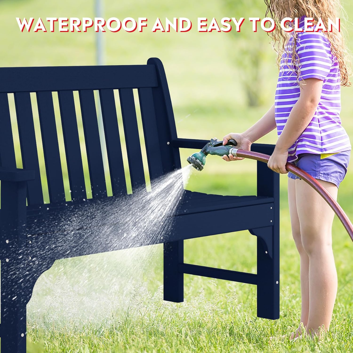 Garden Bench, Farmhouse Park Front Porch for Entryway Bench Outdoor Seating Low Bench Patio Bench Outside/Indoor, Navy Blue