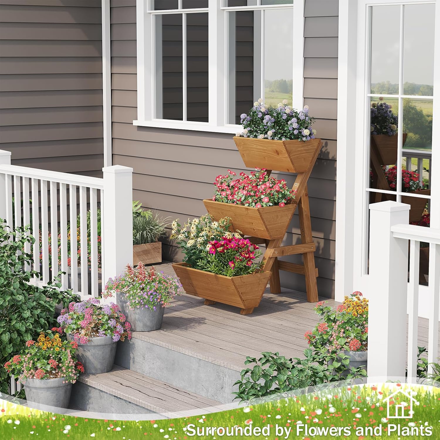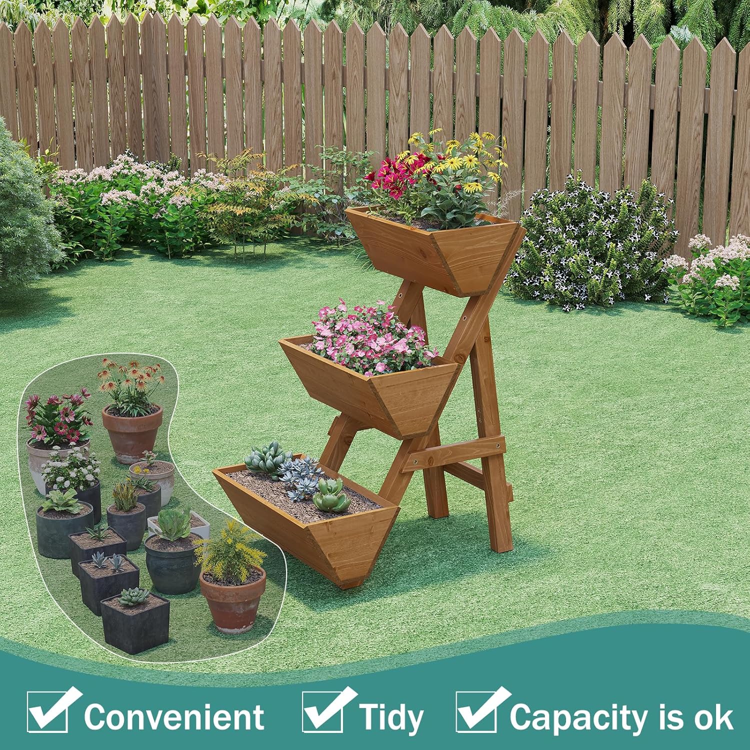 - 3-layer Vertical Garden Bed: The vertical design with a suitable height does not limit the growth of the lower plants but also allows for classified planting