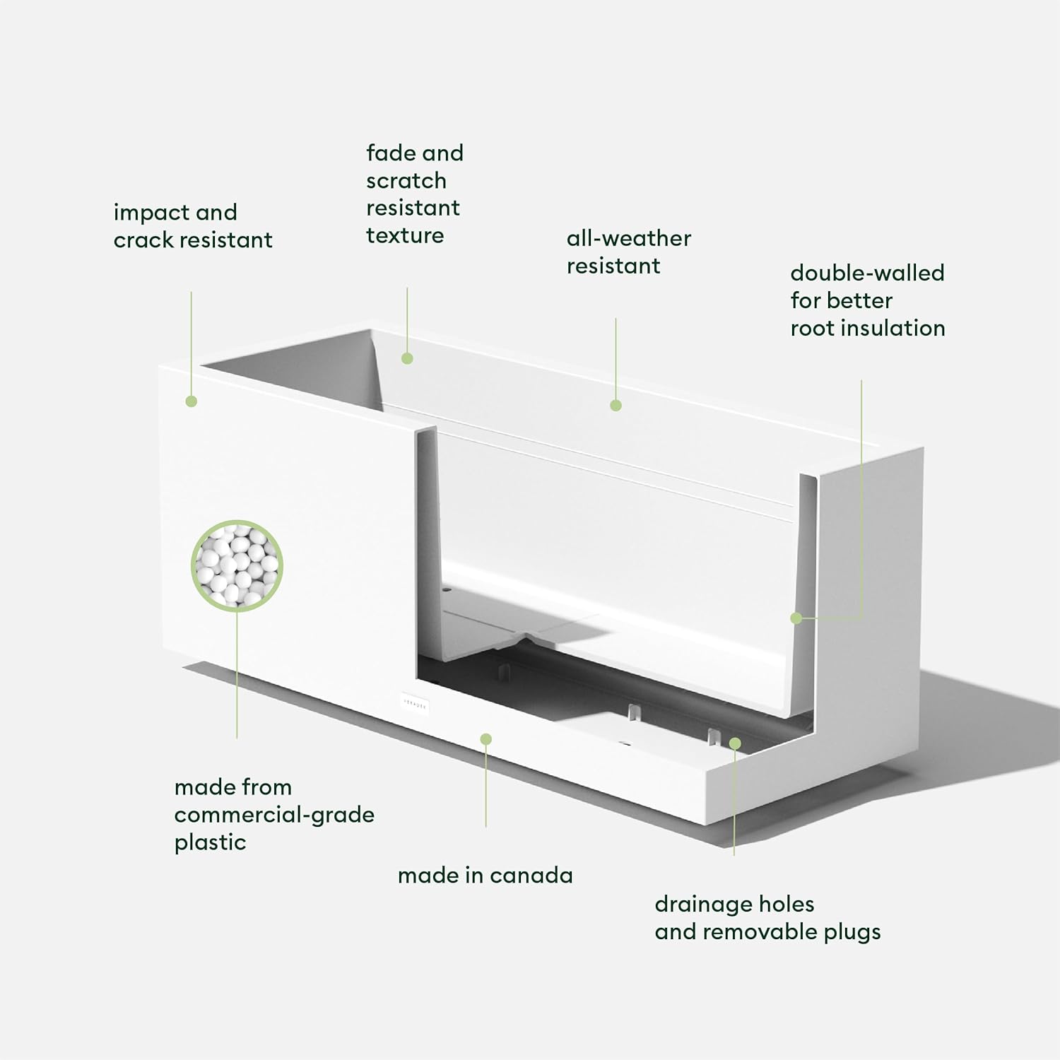 - PROUDLY MADE IN CANADA - Designed and made in Canada, so you can rest assured that your Veradek long planter will be of the highest quality and last all year round