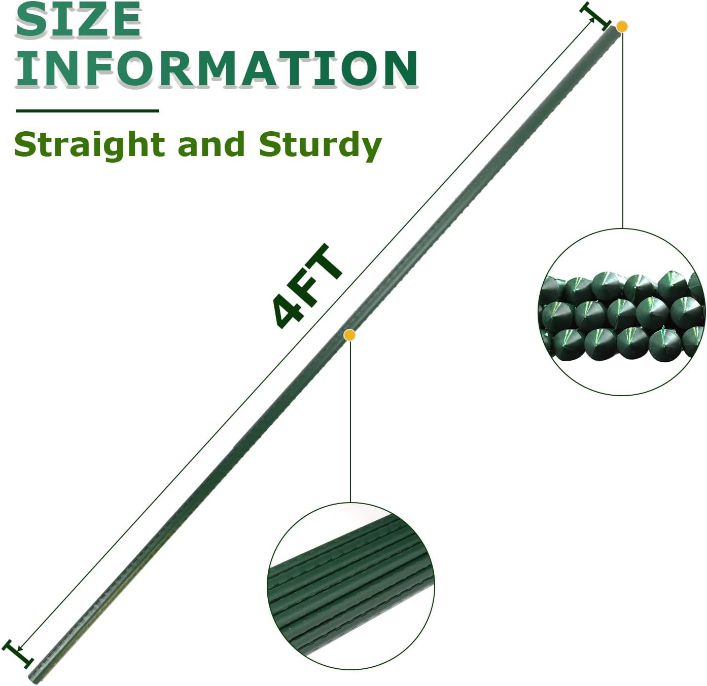 - WHAT'S INCLUDED : 4 Feet Height, 2/5 inch diameter. Each package contains 25 sturdy steel plant stakes.