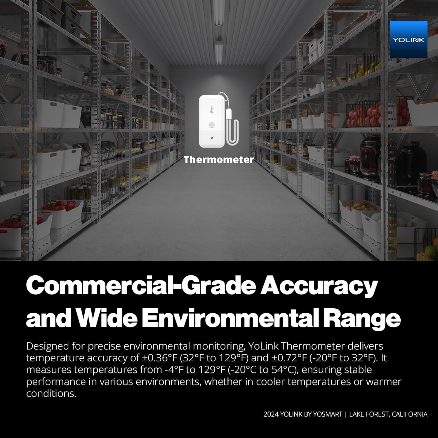 - Commercial-Grade Accuracy and Wide Environmental Range: Designed for precise environmental monitoring, YoLink Thermometer delivers temperature accuracy of ±0.36°F (32°F to 129°F) and ±0.72°F (-20°F to 32°F). It measures temperatures from -4°F to 129°F (-20°C to 54°C), ensuring stable performance in various environments, whether in cooler temperatures or warmer conditions.