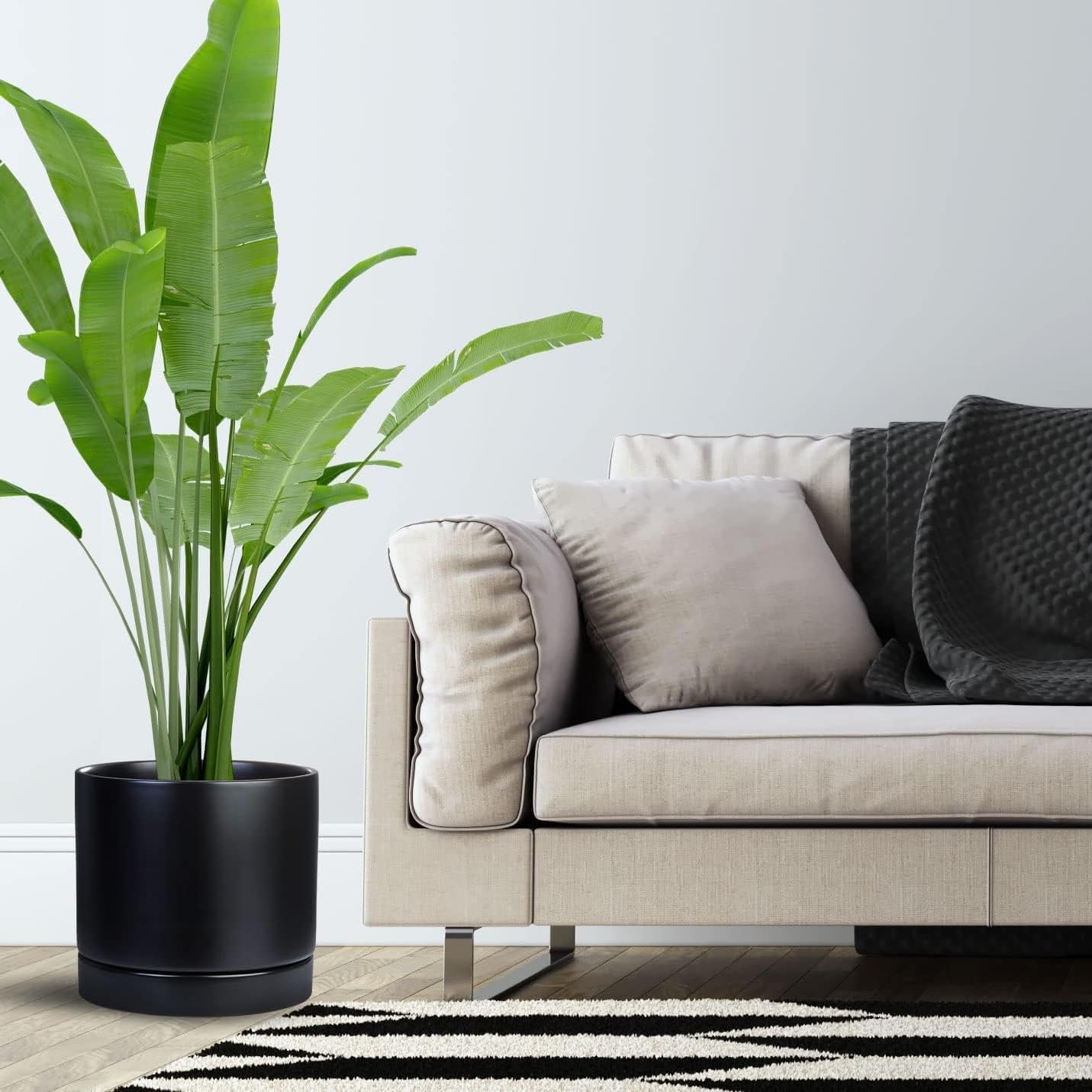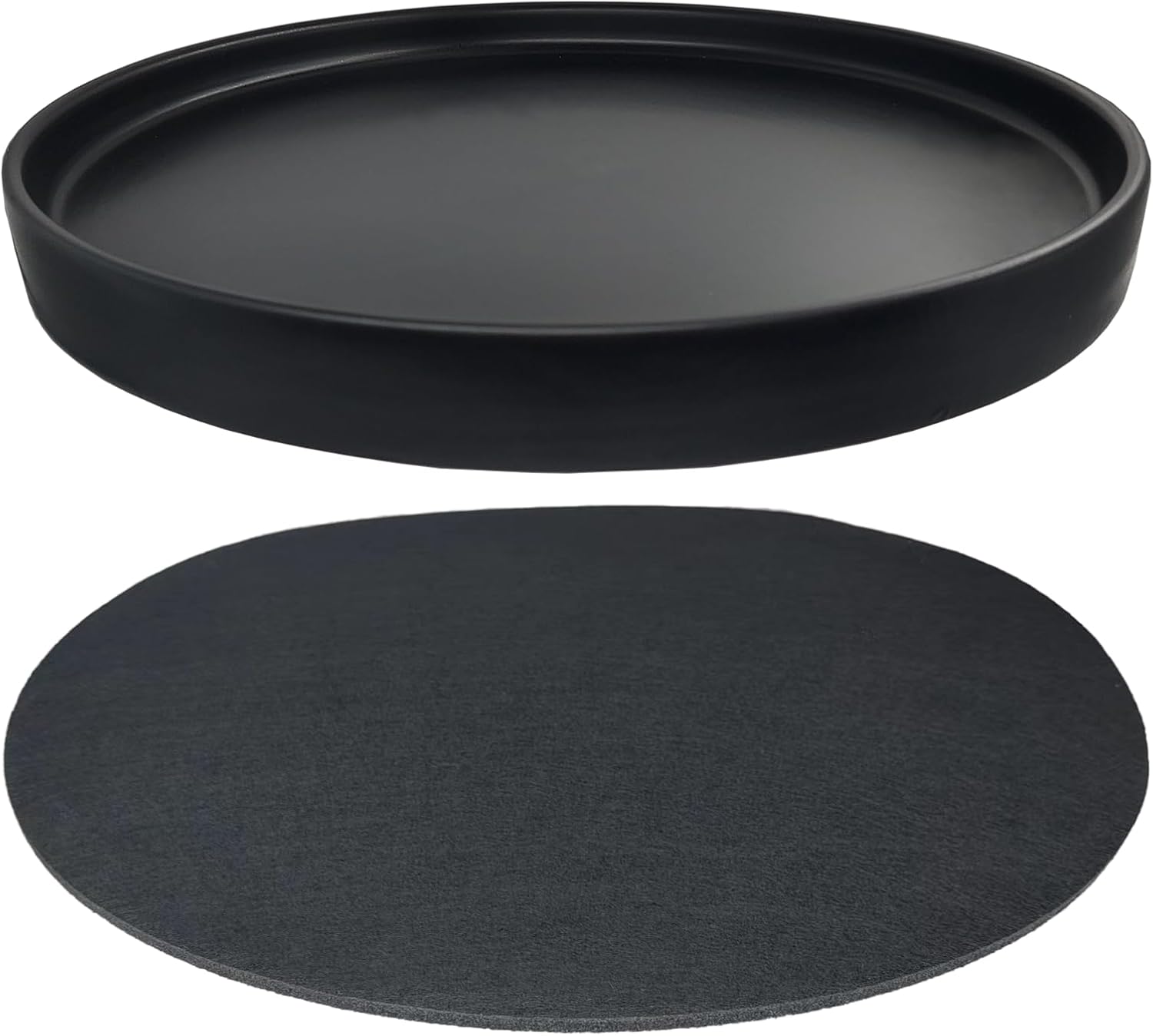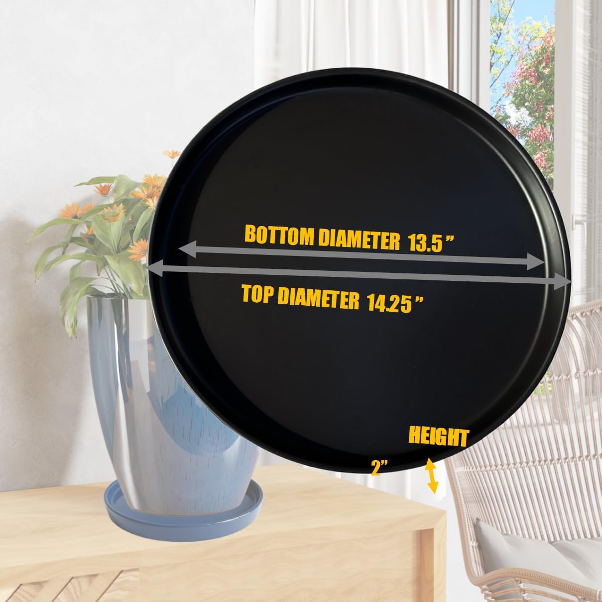 Ceramic Plant Saucer Black Deep Pot Tray - 1 Pack 15 inch, Planter Saucers Water Drip Trays for Indoors Outdoor, Thick Durable Sturdy Flower Pot Saucers for Glazing Pots Base(15"/13.5"-Size)