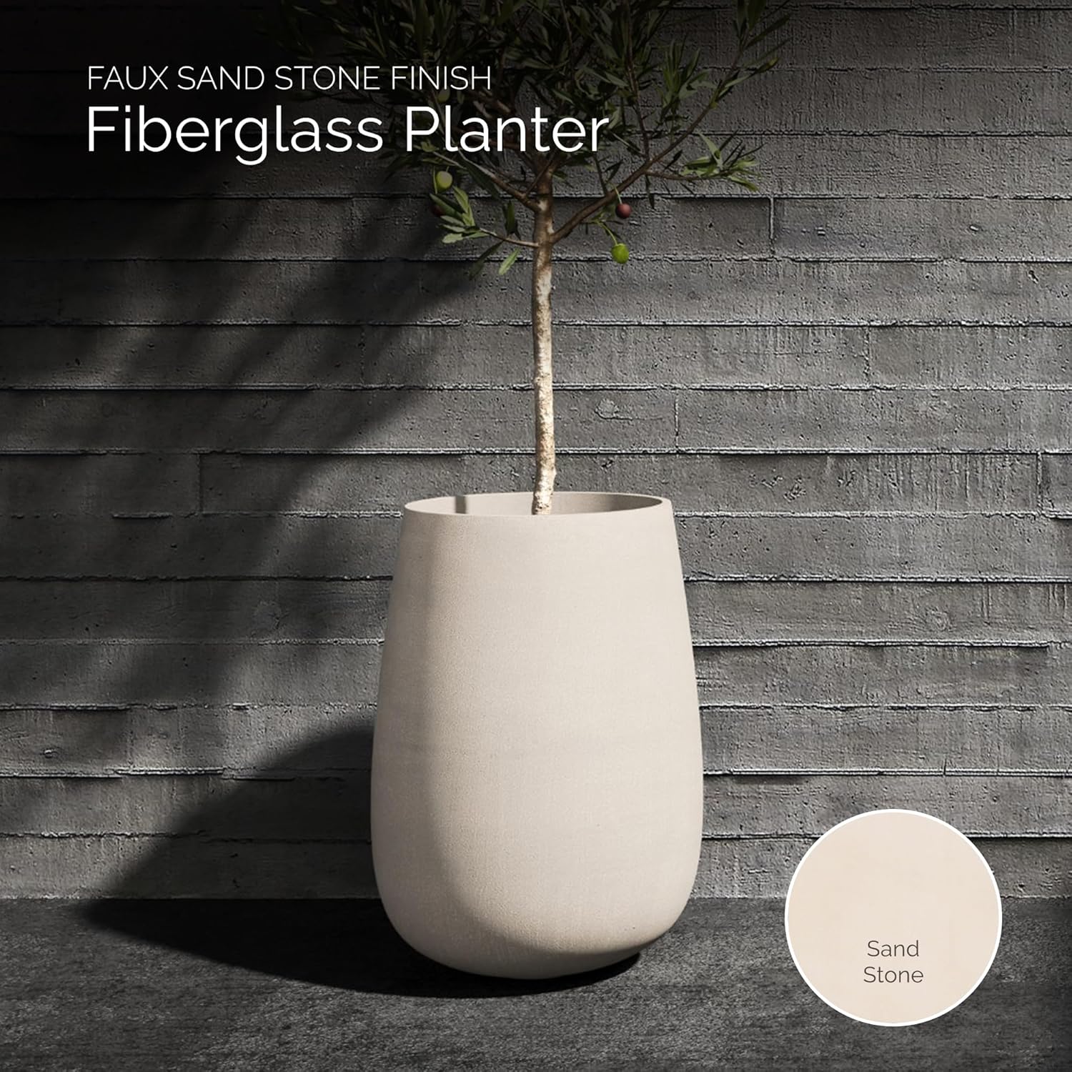 Mondo High Tall Planter – Sand Stone Finish – Fiberglass Indoor/Outdoor and Weather-Resistant Round Planter (25.6" D x 35.6" H Exterior, 20.3" D x 35.4" H Interior)