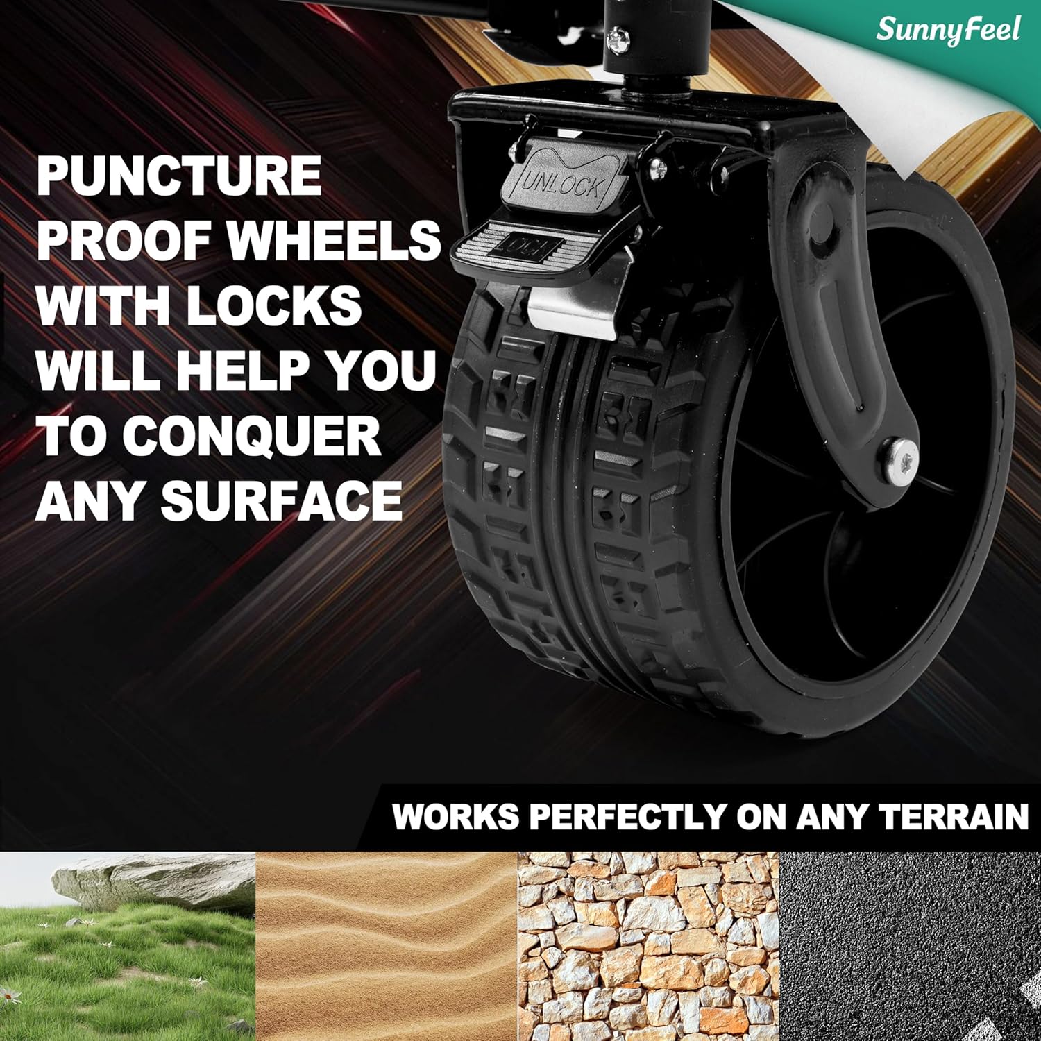 - Navigate through sandy beaches, rocky paths, or your own backyard with the cart's large, foldable beach wheels, designed specially to provide stability and ease over various terrains. Whether it's transporting gardening supplies or carrying picnic essentials, your items will rest secure and undisturbed during transit.