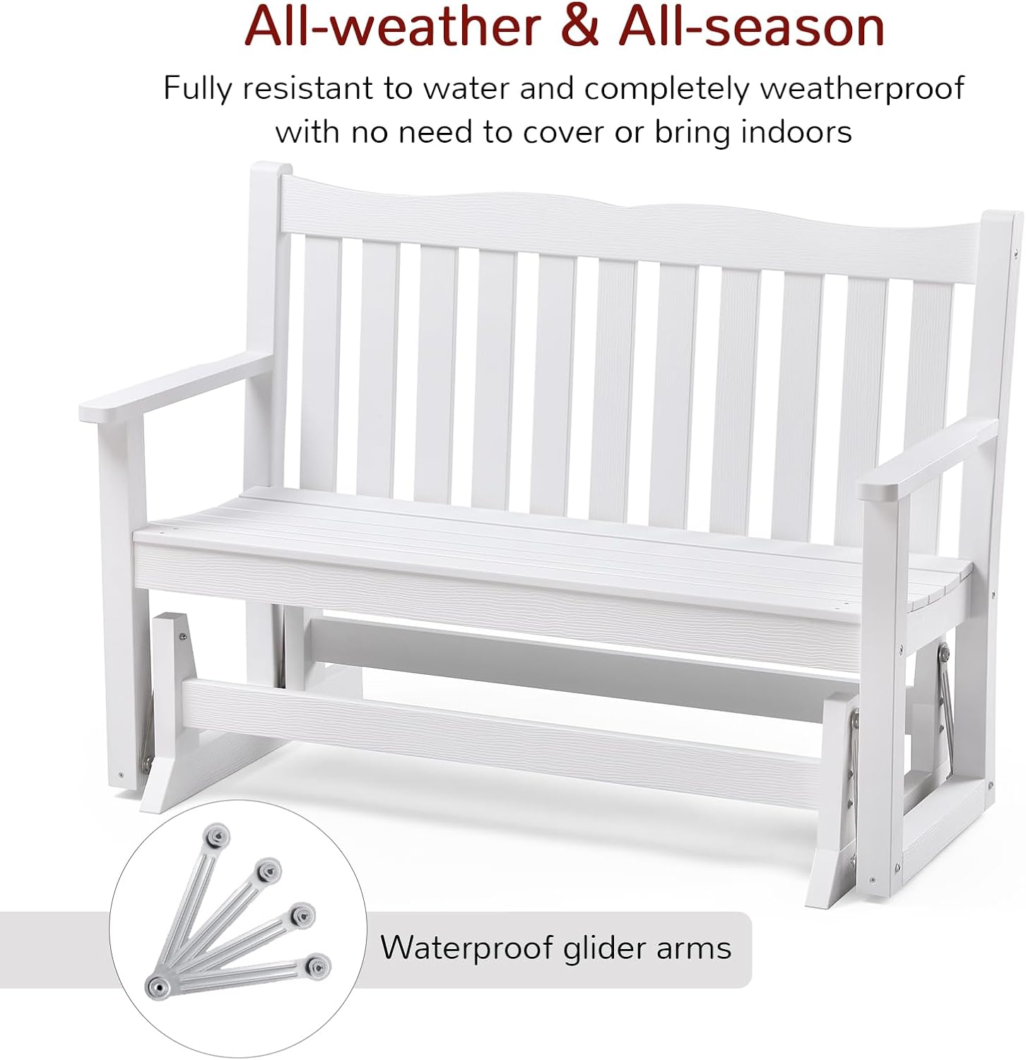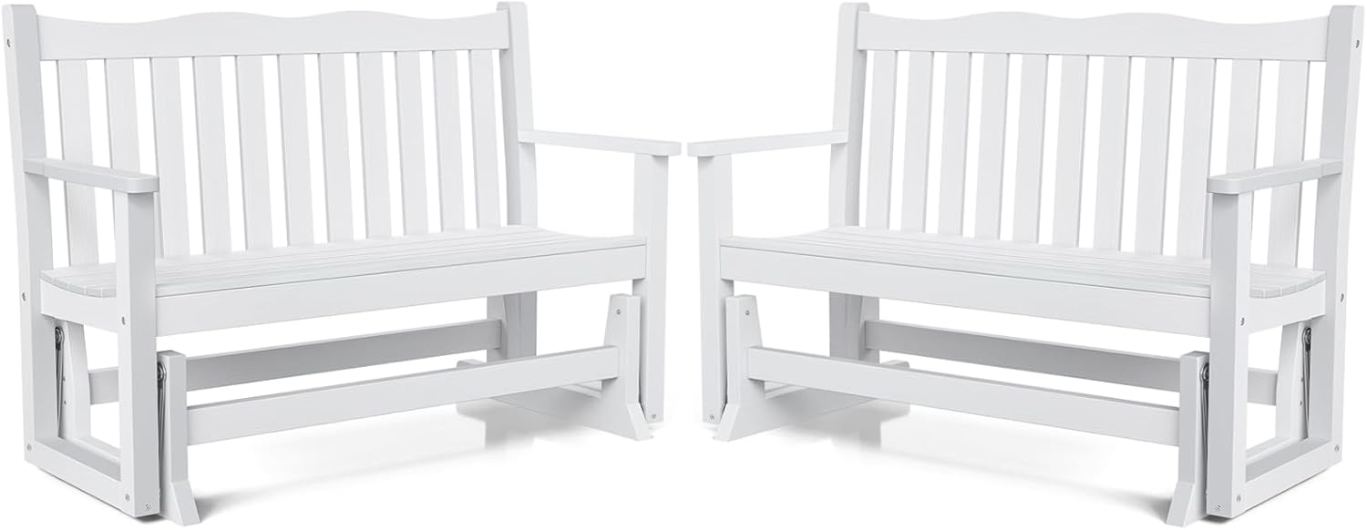 Stoog Outdoor Glider Benches Set of 2, All-Weather Patio Glider with 800 lbs Weight Capacity, Never Fade or Rot, for Porch, Backyard, and Garden, White