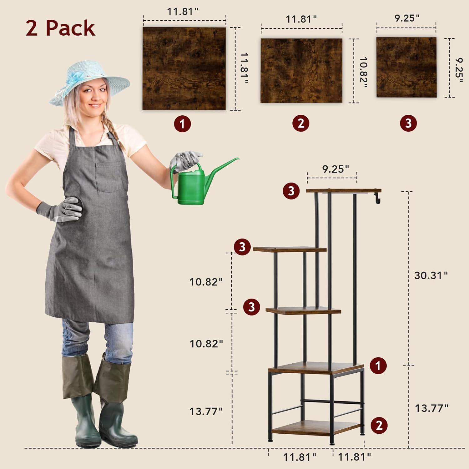 - [Heavy-Duty Design] Built with heavy-duty iron pipes and waterproof walnut shelves, this tiered plant stand indoor is designed to withstand the elements and provide long-lasting support for your favorite plants. The thickened boards are treated with a waterproof layer to prevent warping, curling, or water damage, making it perfect for both indoor and outdoor use. It’s a durable, elegant solution for those looking to enhance their spaces with indoor plant shelf and flower stands for indoor plants