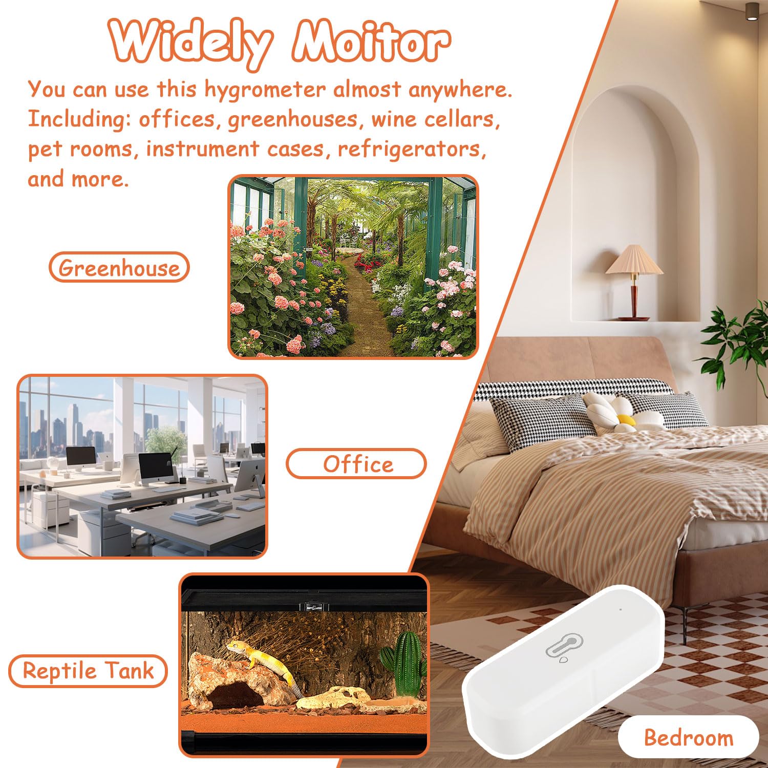 - Can be placed anywhere: The wifi temperature humidity sensor's design fits in the palm of your hand. It's small enough to fit in potted plants, cigar humidors, reptile vivariums, and other small spaces