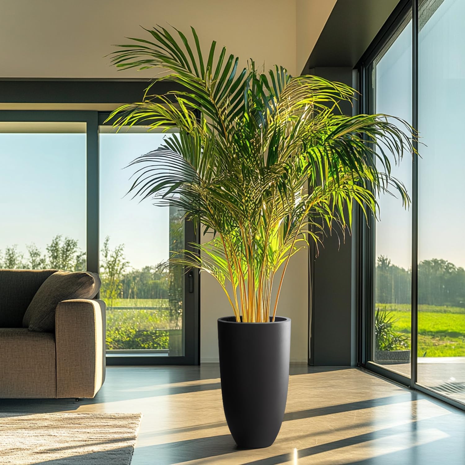 Tall Planters for Outdoor Plants, Large Concrete Flower Pots for Garden Front Porch, Patio, Indoor (Black, 24 inch)
