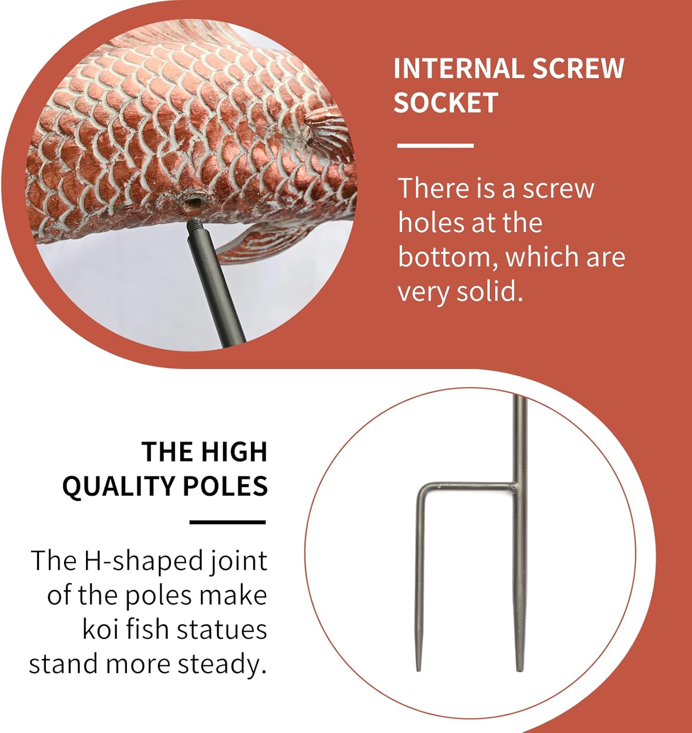 - Easy to Install: This fish garden decor statues does not require any tools, and can be placed anywhere you want by inserting an iron rod into the hole under the fish maw. Please dont push from the top of the fish itself.