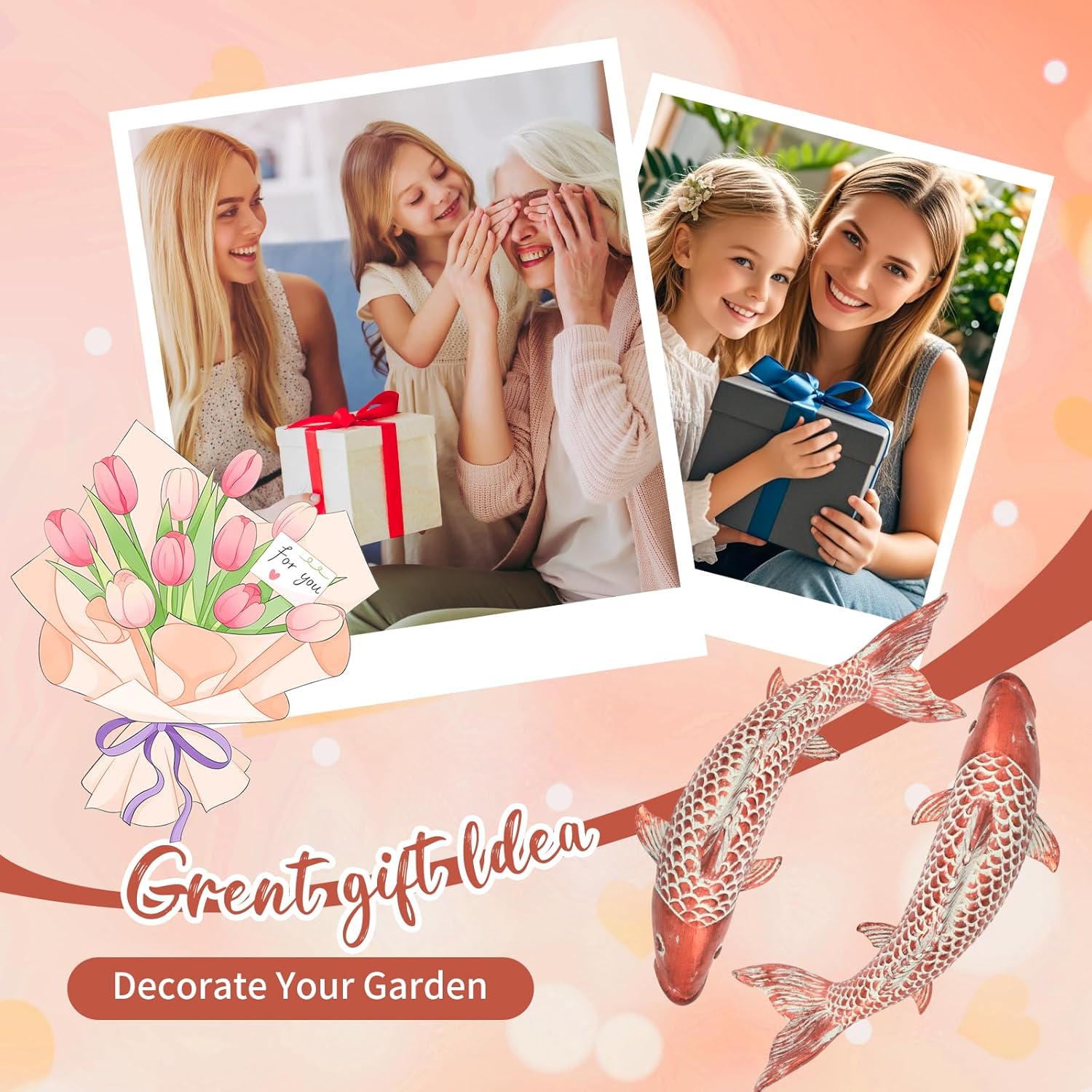 Outdoor Statues Garden Koi Fish Decor, 2pcs Antique Copper Koi Fish Sculpture for Pond Lawn Patio Porch Yard Decor Home House Ornaments, Birthday Gardening Gifts for Grandma Women