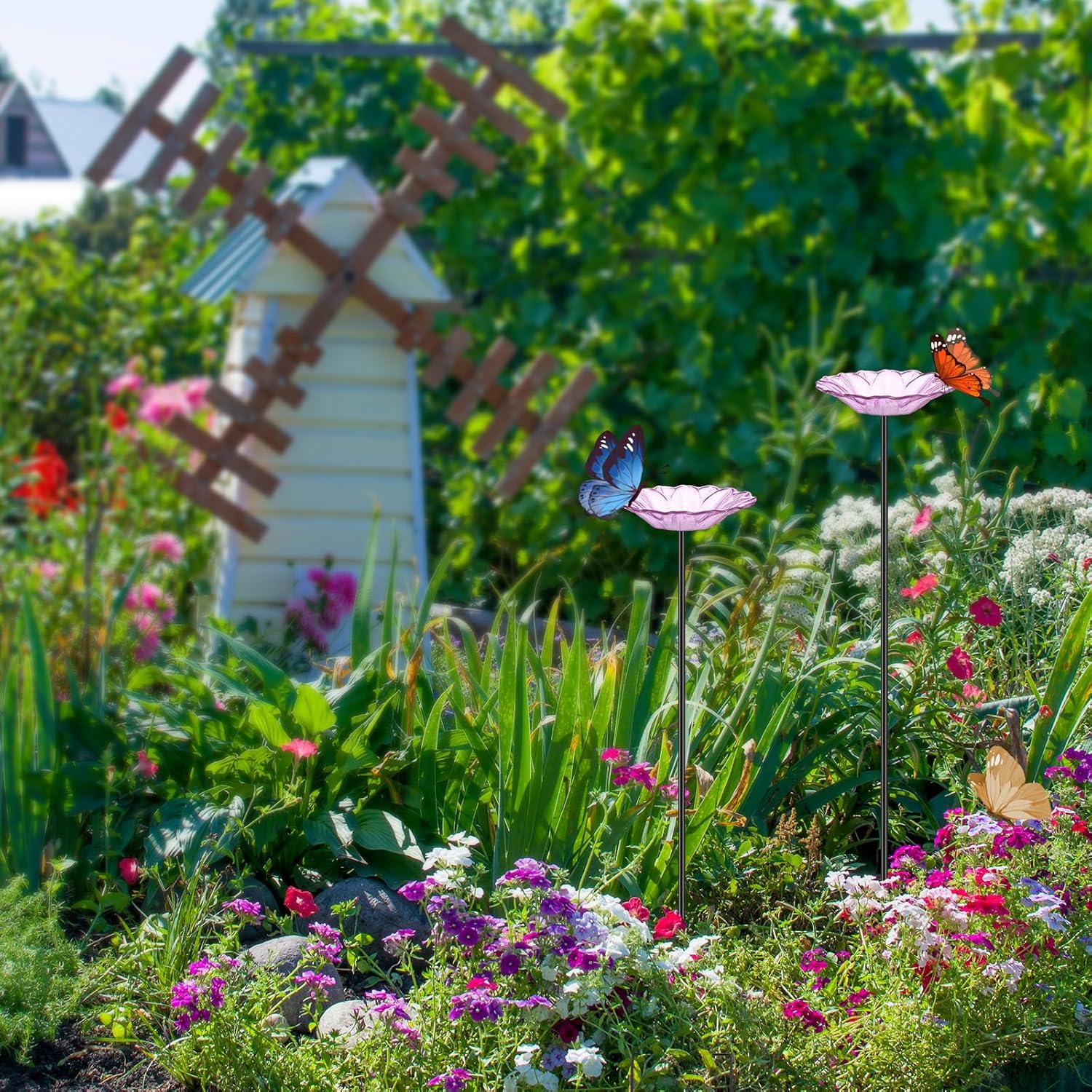 - Attract More Pollinators: our butterfly feeder doesn't just add aesthetic value to your garden but also attracts butterflies and other beneficial pollinators by offering delightful nourishment; The feeder is made of gorgeous flower shaped glass bowls and metal stakes for a steadfast setup