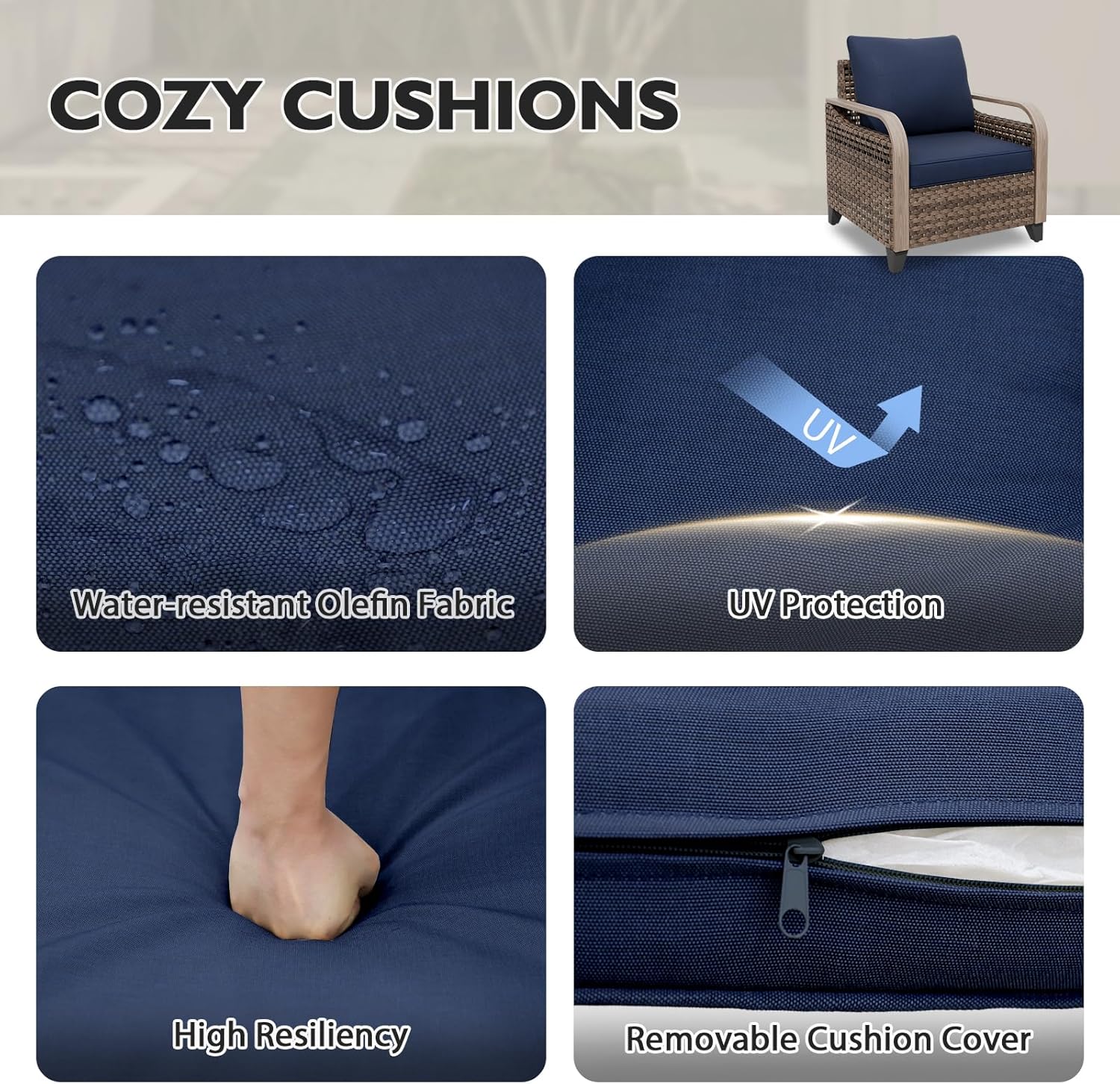 - GATHER, RELAX, ENJOY: These wicker armchairs have generously widened seats and plush 5-inch back cushions for ultimate comfort. Designed for outdoor living, it's made with UV protection and weather resistance materials, making this furniture set the ideal choice for stylish, worry-free lounging.