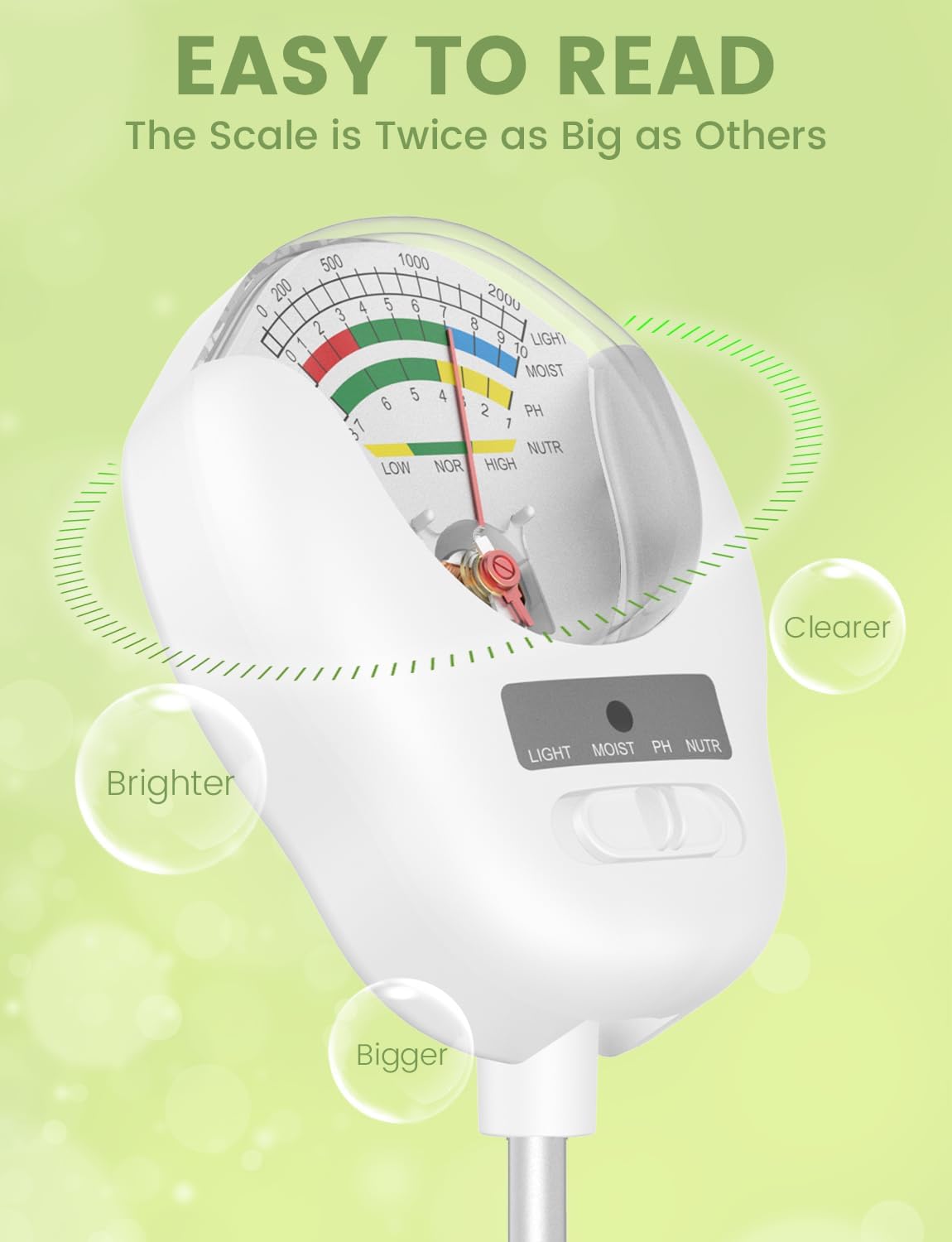- Master your green thumb with 4-in-1 soil testing! Instantly check moisture, pH, light, and nutrient levels—no guesswork needed. Give your plants the perfect balance of water, fertilizer, and sunshine, and watch them thrive faster!