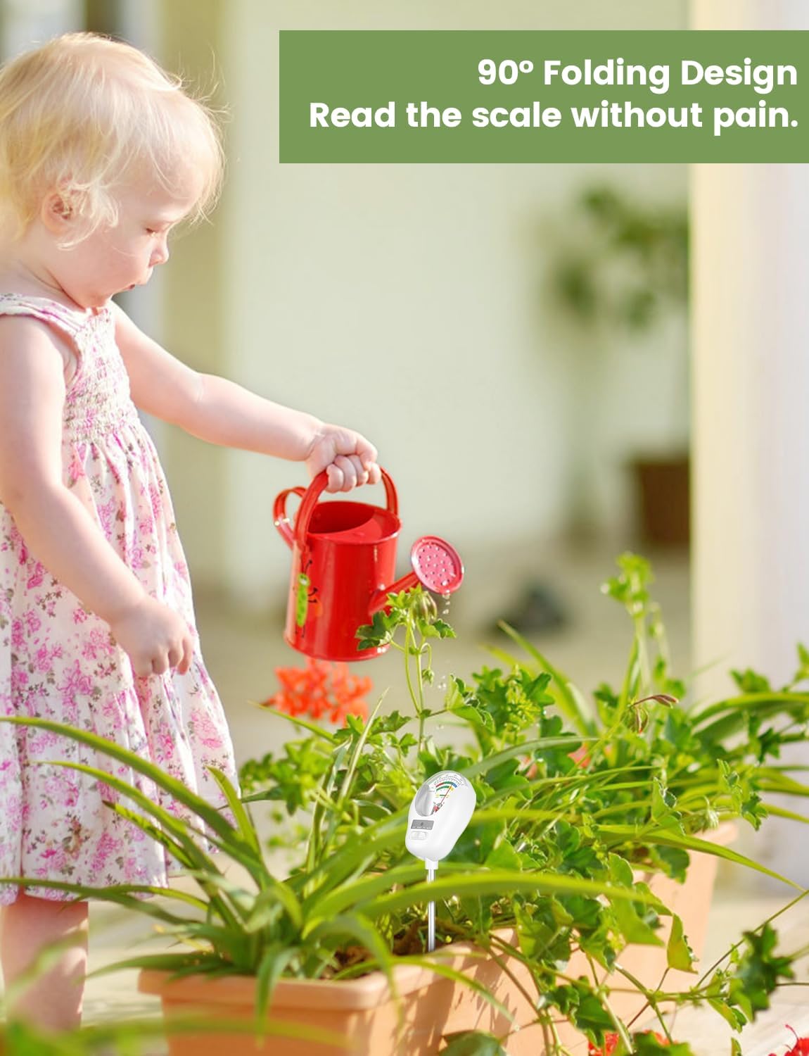 - Fold the 90° adjustable probe for effortless reading—say goodbye to awkward squatting! Perfect for seniors, busy gardeners, or anyone who wants to check soil health without straining their back.