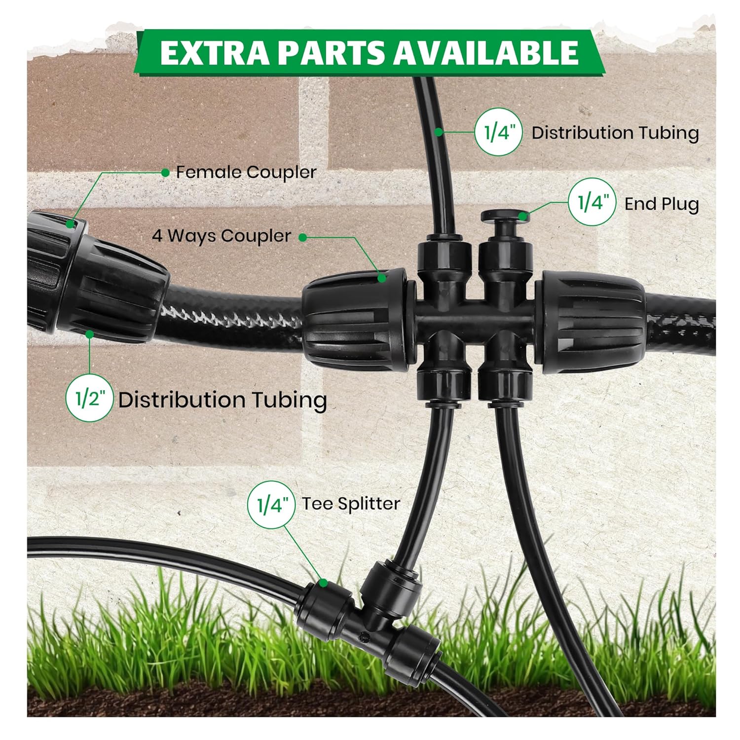 - Quick, Tool-Free Installation in Seconds – Just push the 1/4” barbed connector into standard micro tubing, insert the sturdy stake into the soil, and adjust the water output. Our push-to-connect design ensures a secure, leak-free setup with zero tools or hassle.