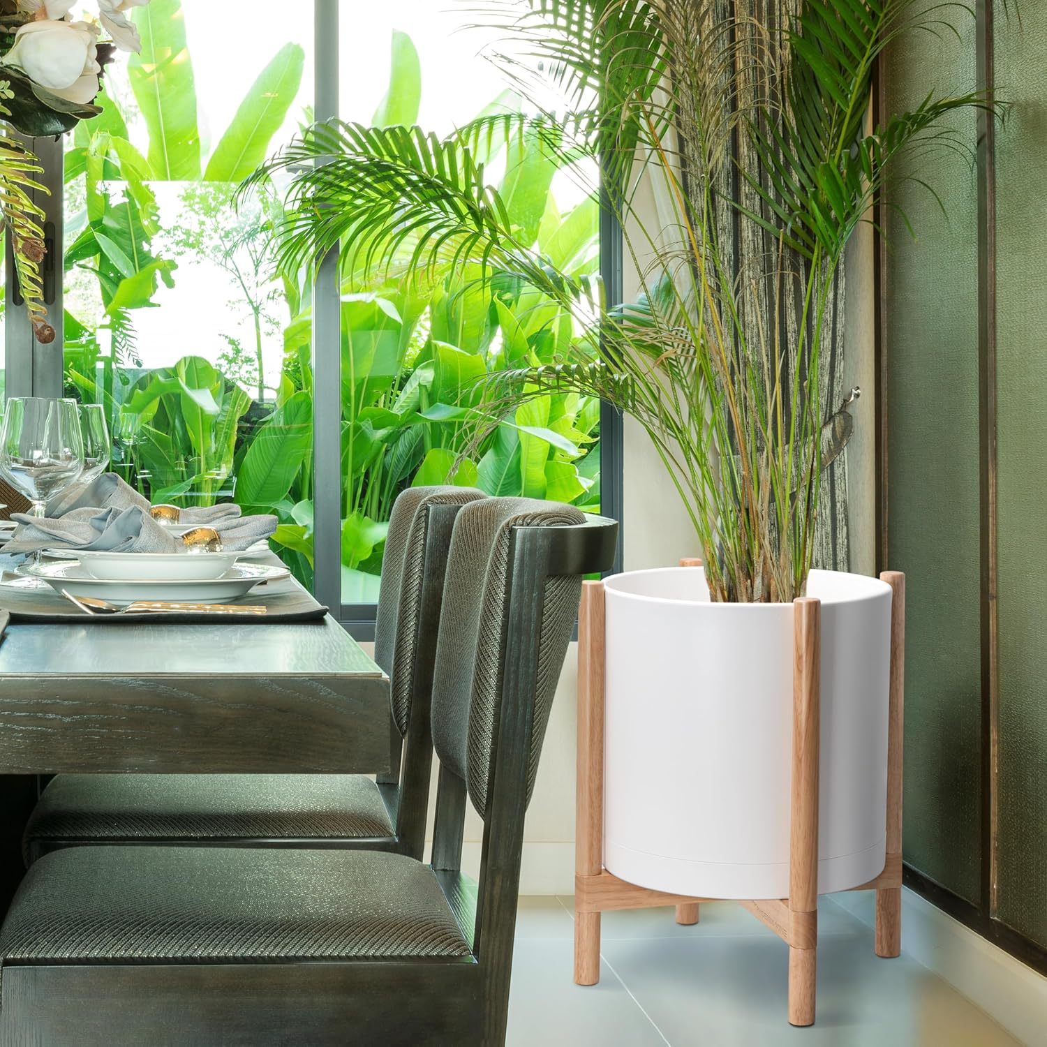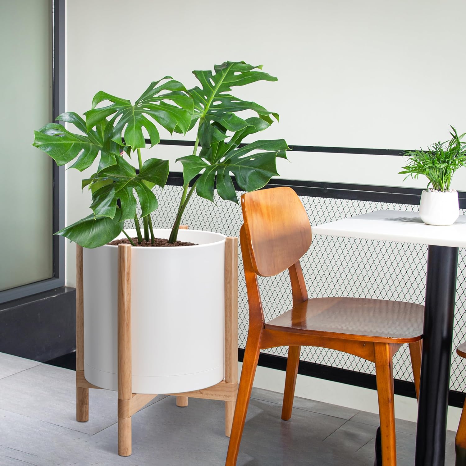 - A Complete Set: Minimalist plastic planter, combined with a sculptural, solid wood stand that match perfectly together and looks great in any home.