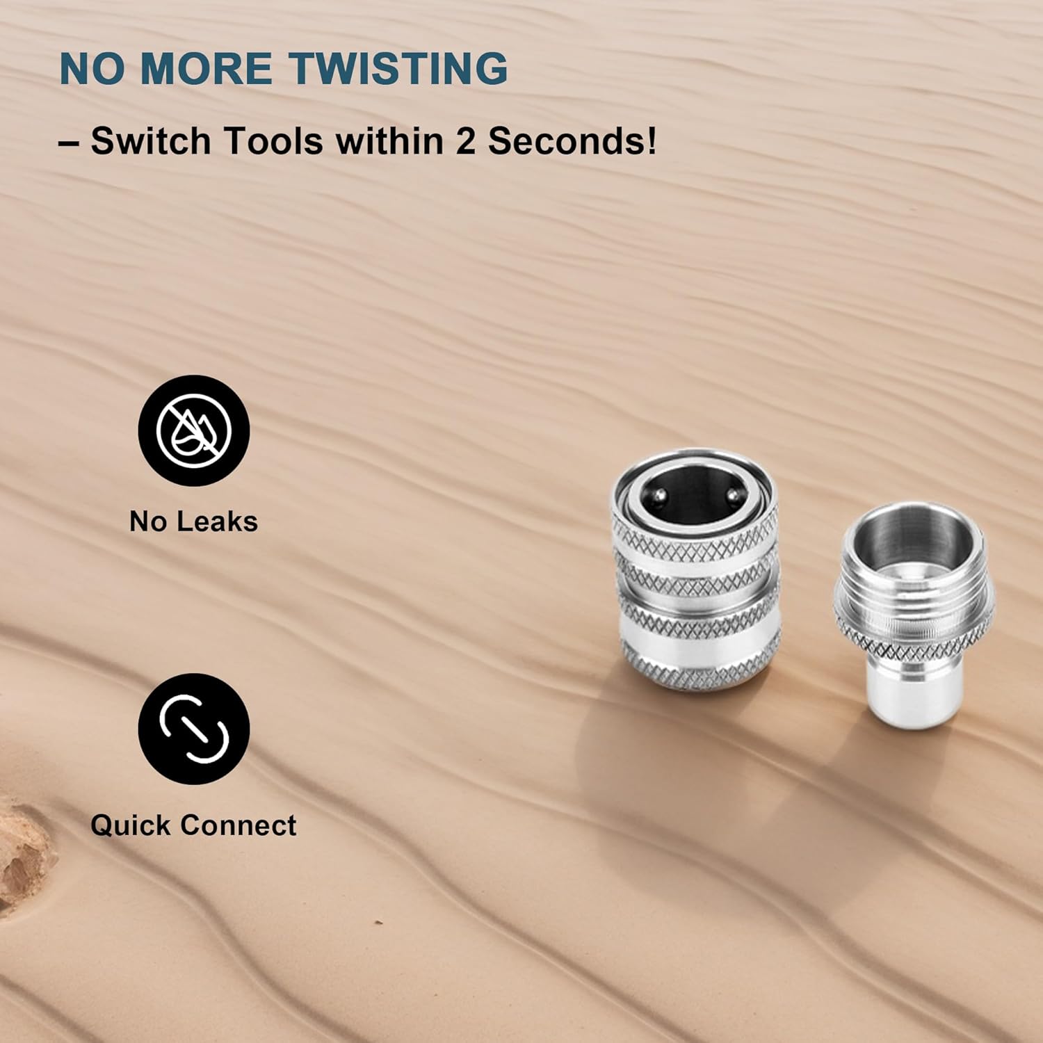 - Premium Stainless Steel Construction: Quick connect hose fittings are crafted from stainless steel, corrosion-resistant, rust-proof, and built to withstand harsh weather conditions. They remain shiny and not oxidized, cracked like brass or plastic.