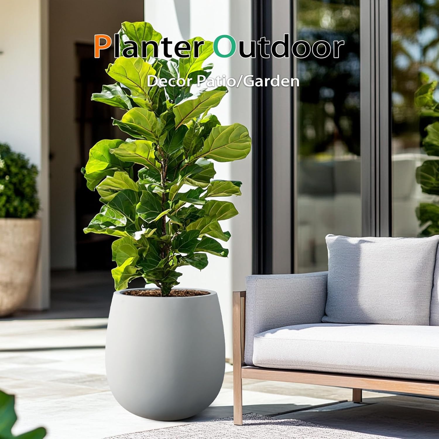 Oval Concrete Planters for Outdoor Plants, Large Tall Cement Flower Pots Indoor for Garden, Front Porch, Patio (Gray, 18.5 inch)