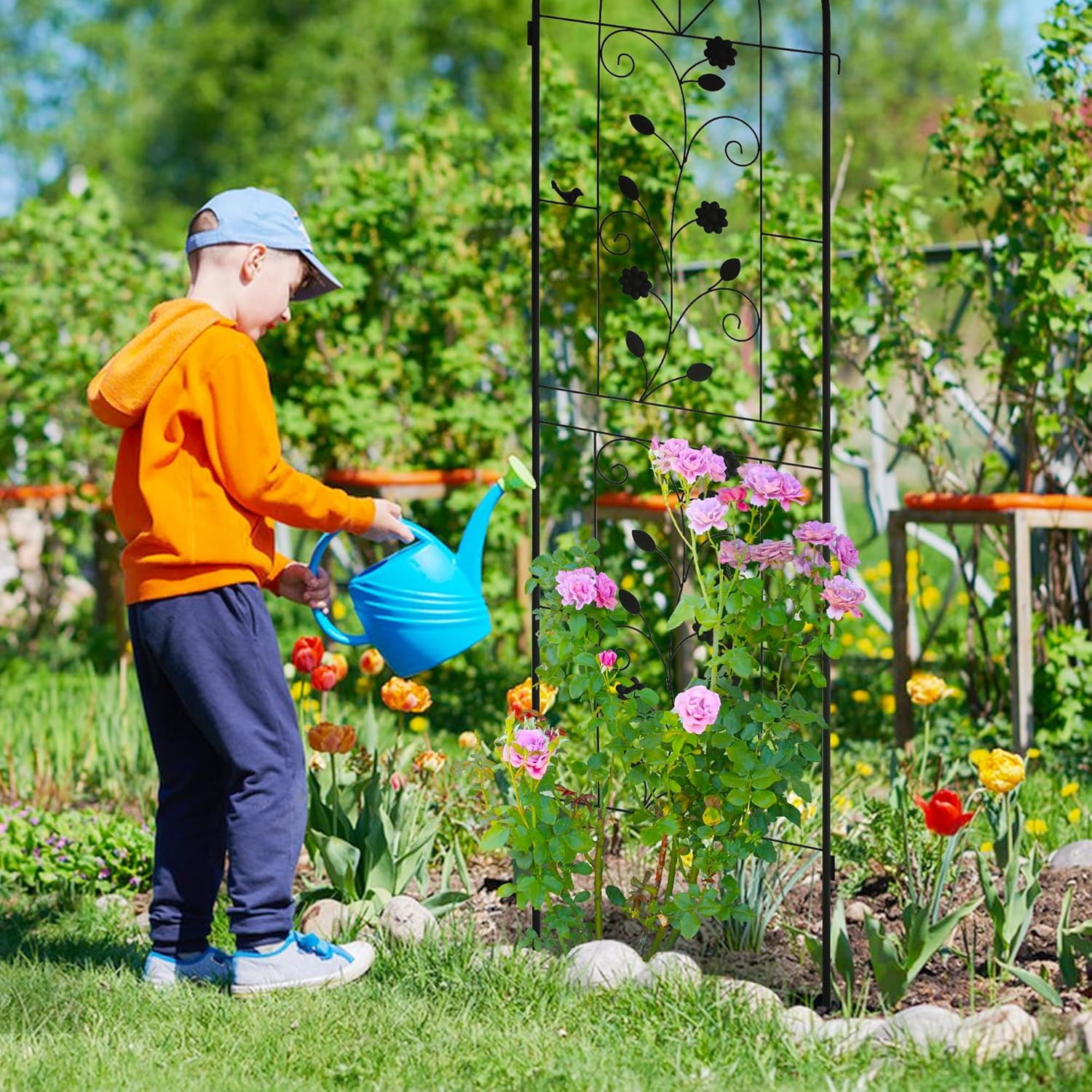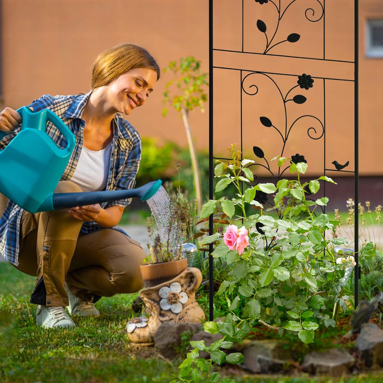 - Wide Applications: Trellis for climbing plants outdoor provides supports for small flower pots and many kinds of climbing plants such as Ivy, roses, clematis, jasmine, cucumbers, vines, grapes, morning glories, long stemmed and potted vegetables. Trellis for potted plants adds beauty to your growing area, charm to your garden and avoid any mess cause by fast-growing plants.
