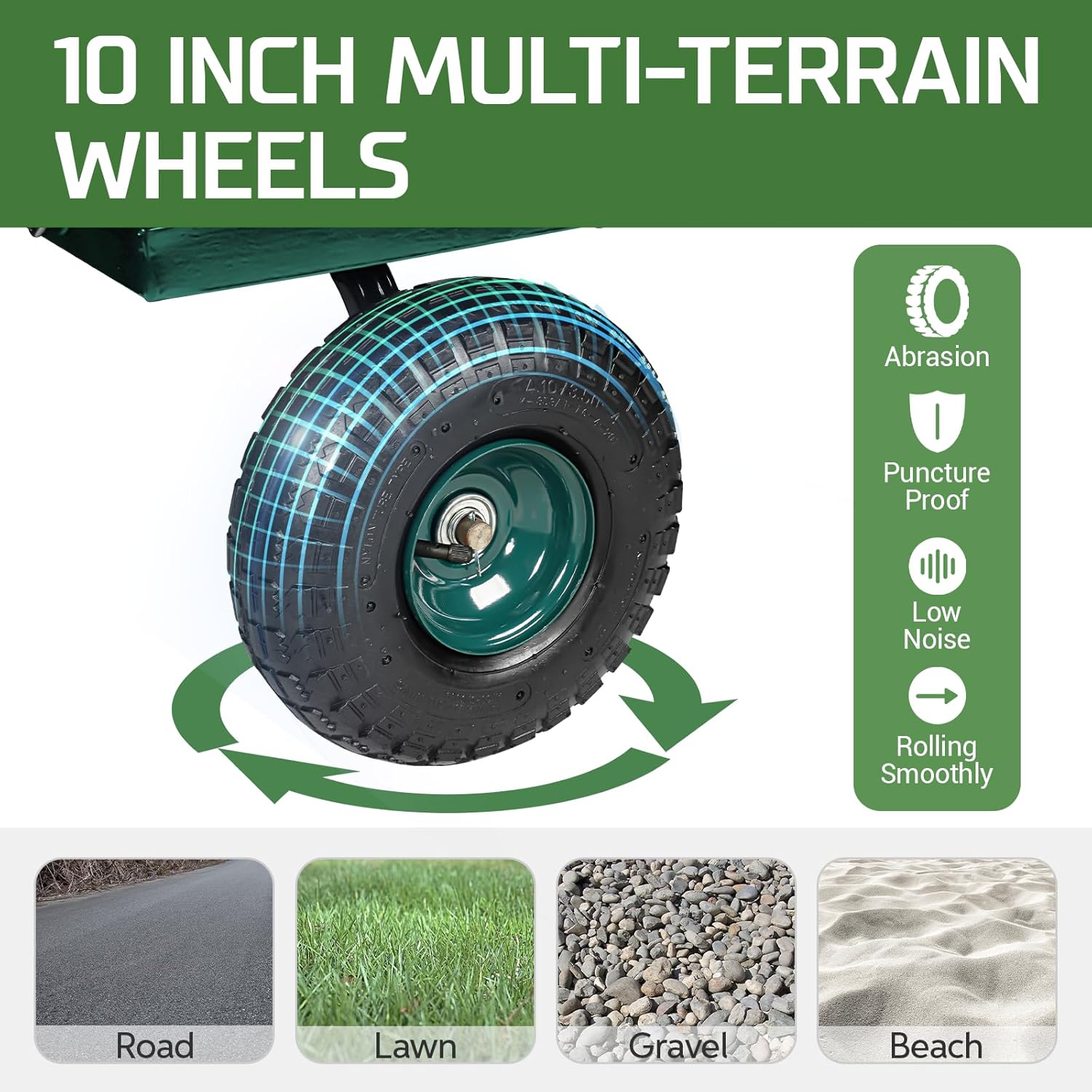 TAIFA Heavy Duty Steel Garden Cart 880 Lbs Capacity with Removable Sides for Yard Lawn and Farm, Metal Utility Wagon with 180° Rotating Handle, Green