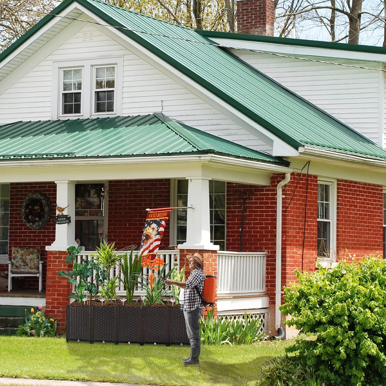 - 【Watering System with Reservoir】:The flower box features self-watering disk & drainage holes, can provide water reservation spaces to avoid plants over-drying when forget to water for some time. Drainage holes will effectively drain out excess water, preventing roots from decay.