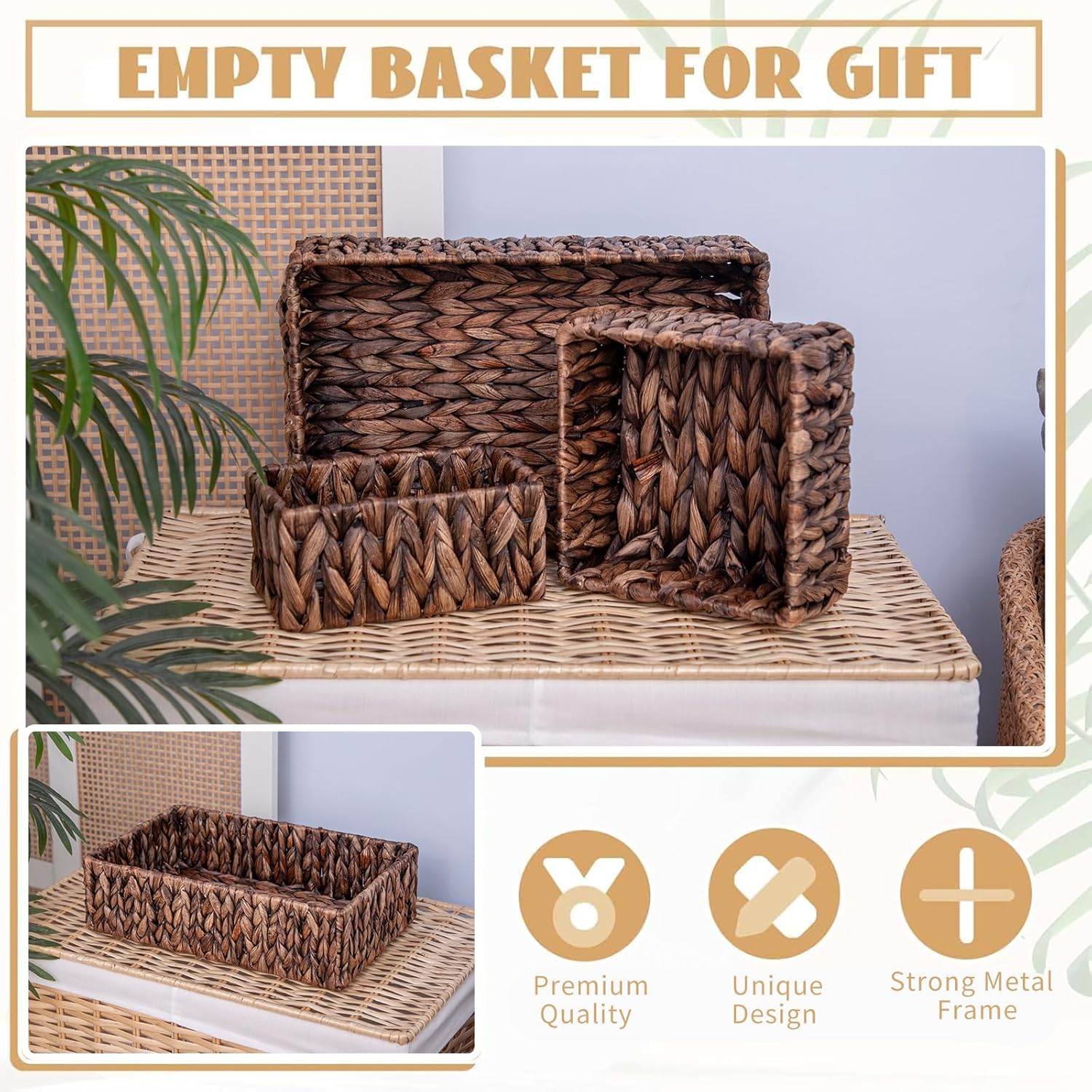 - Natural & Durable Materials: Crafted from eco-friendly water hyacinth and reinforced with rust-resistant iron frames, these baskets combine sustainability with long-lasting sturdiness. The tight woven design resists fraying, perfect for daily use