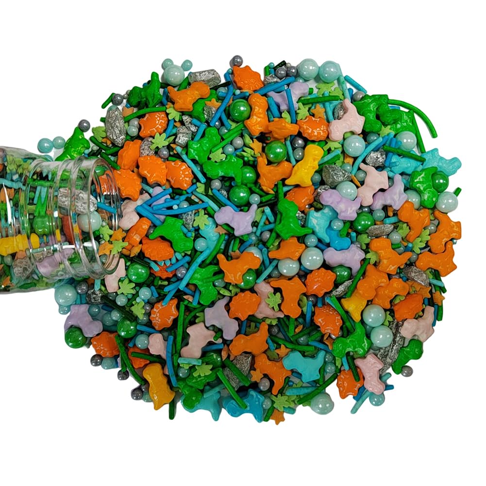 - Specifications - 1 bottle dinosaur sprinkles. Each bottle net weight 3.53 ounces, 100 Grams