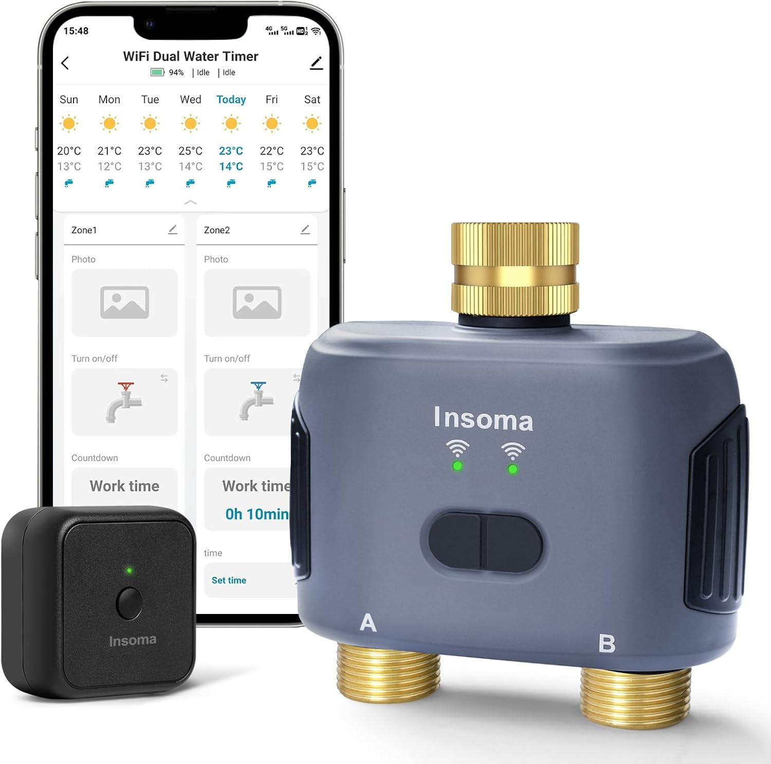 - 【Smart Voice Control】: Insoma outdoor smart sprinkler timer is compatible with Alexa and Google Assistant, allowing you to turn the watering timer on/off by using simple voice commands. Enjoy the hands-free convenience of controlling the watering system with your voice.